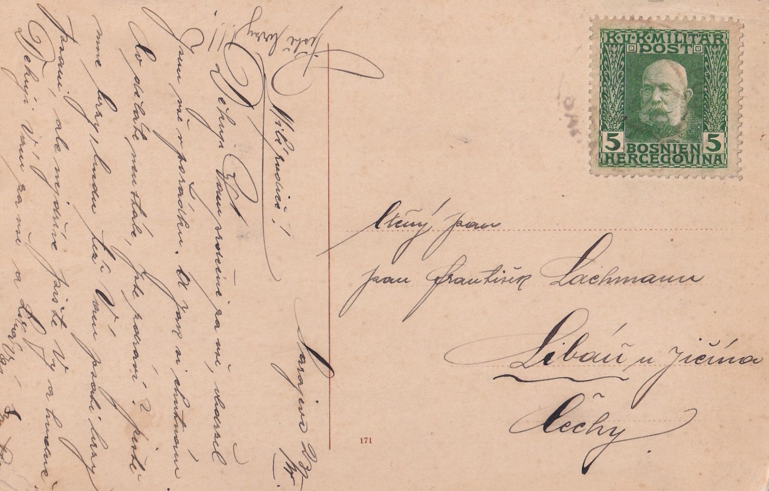 22 (hhf) Rozměr 14 x 9 cm. Pozdrav z Korneuburgu. Adresát Libáň u Jičína.