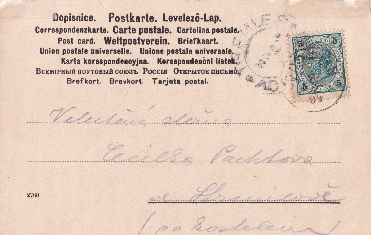 26 (hhf) Rozměr 14 x 9 cm. Před r.1918. Razítko Popelín. Adresát Strmilov.