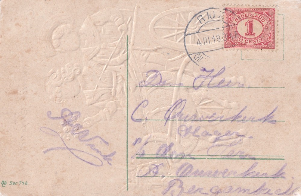 Pohlednice tlačená Oslík s povozem, chlapec s dívkou 1934 - Obrázek 2