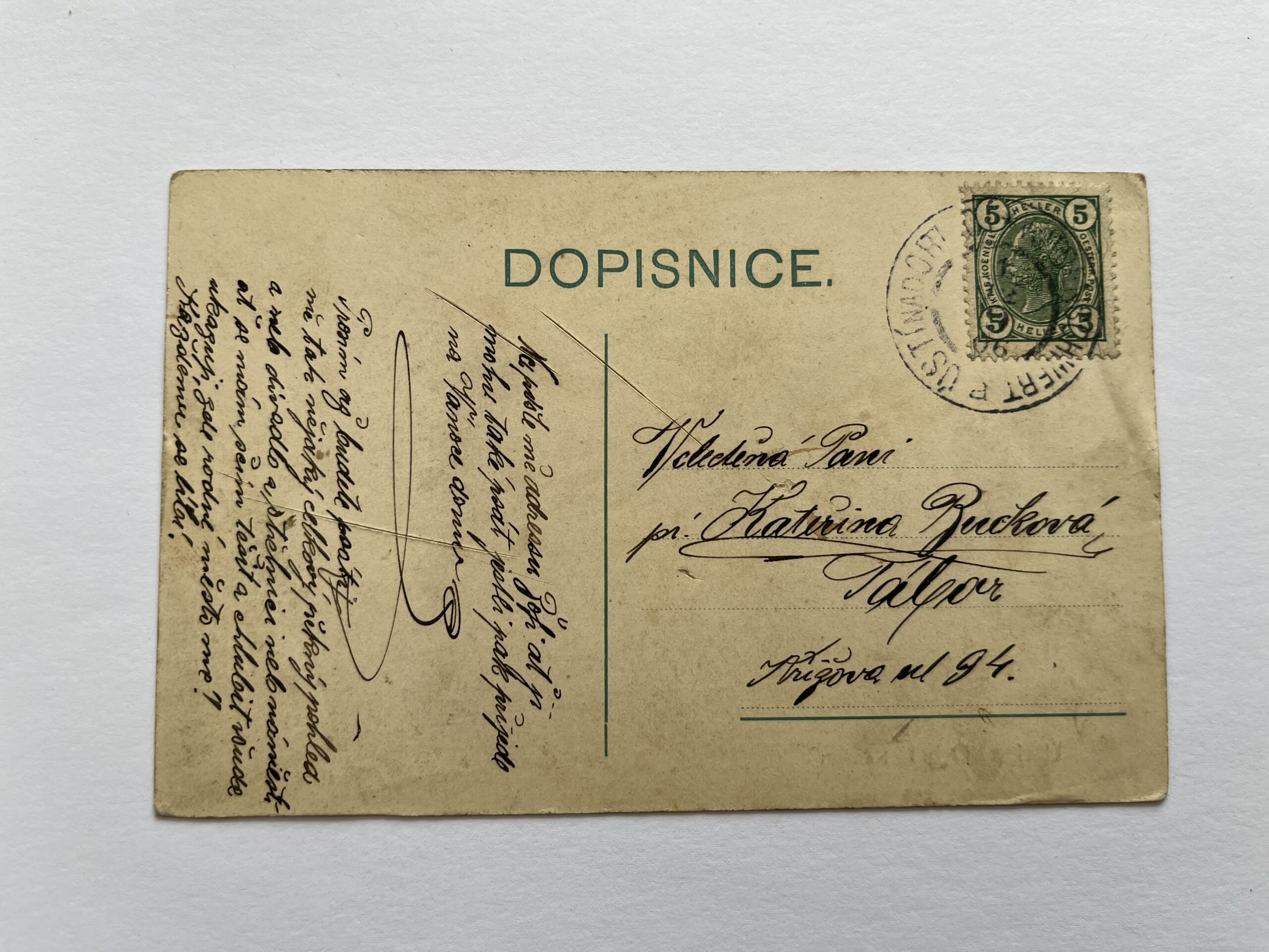 (Ústí nad Orlicí 72) Pohlednice malý formát, prošlá poštou, 1906. Pohlednice z druhé strany pořezaná, roh mírně pokrčen, viz foto.