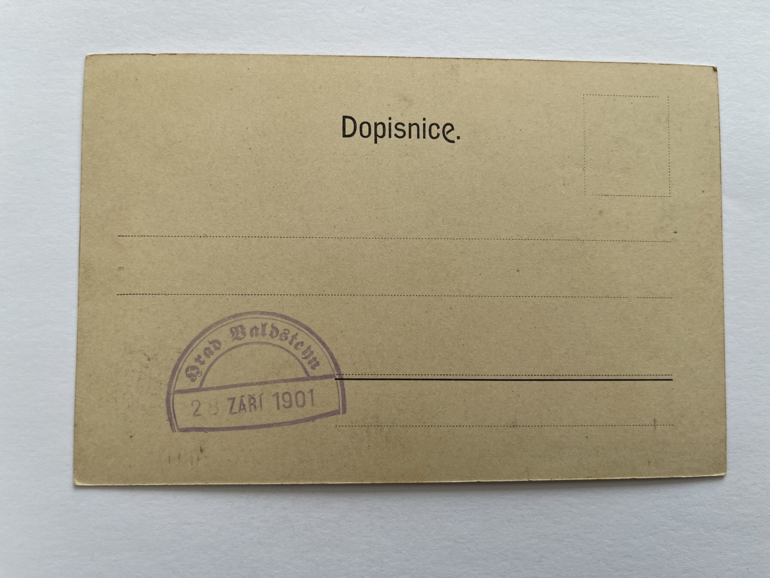 Pohlednice Valdštýn, Hrubá Skála razítko hrad Waldstein 28.září 1901 - Obrázek 2