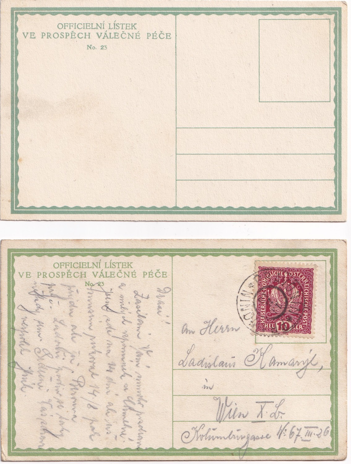 (hhk 45) MF, jeden pohled prošlý poštou. Set 2 ks, malíř Torggler. Ve prospěch válečné péče 2 ks.