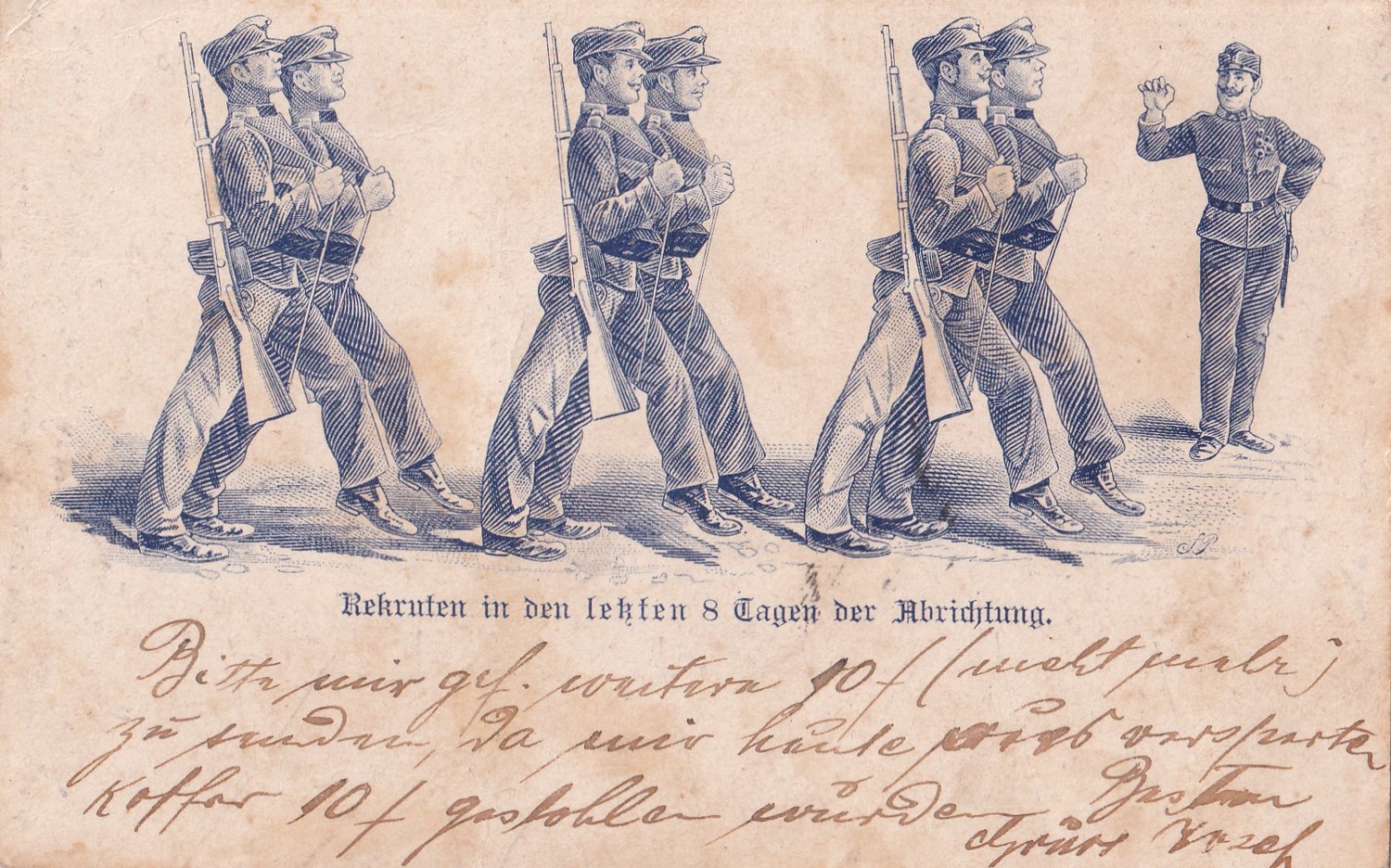 Pohlednice Vojsko Rakousko-Uhersko Rekruti při tréninku, r.1898