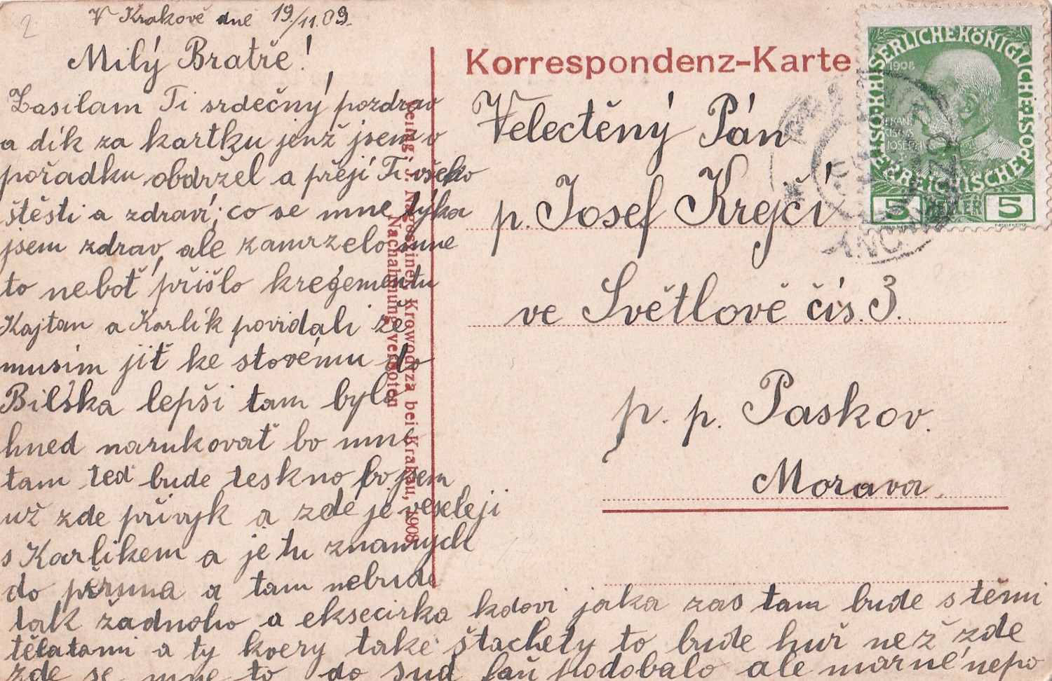 23 (hhf) Rozměr 14 x 9 cm. Adresát Paskov Morava.