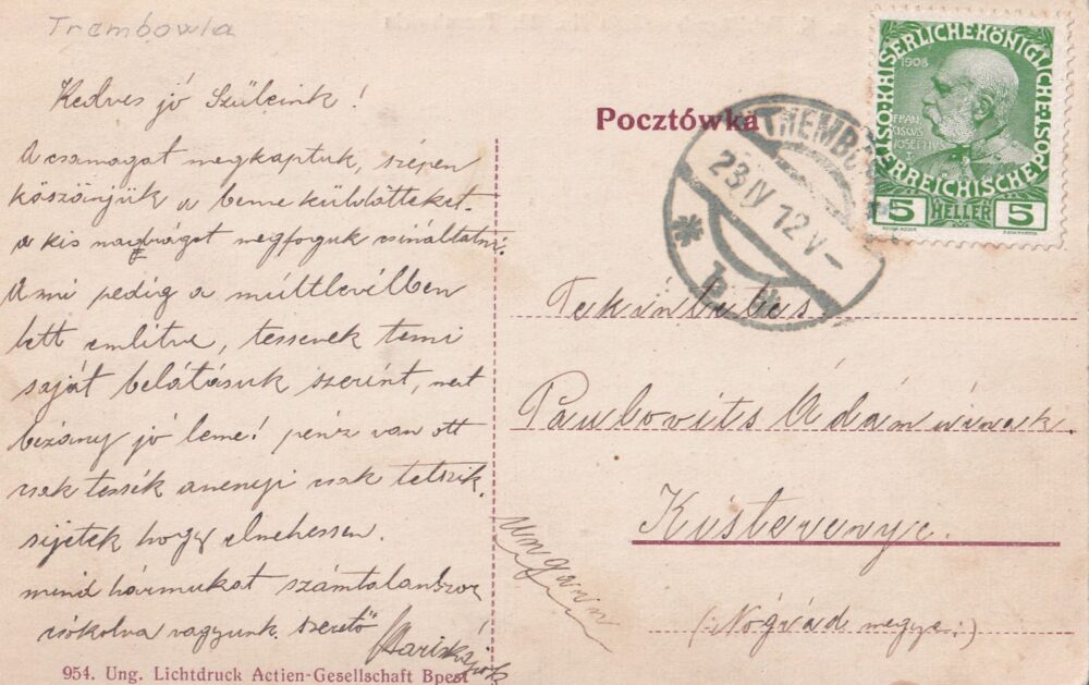 17 (hhf) Rozměr 14 x 9 cm. Razítko Trembowla r.1912