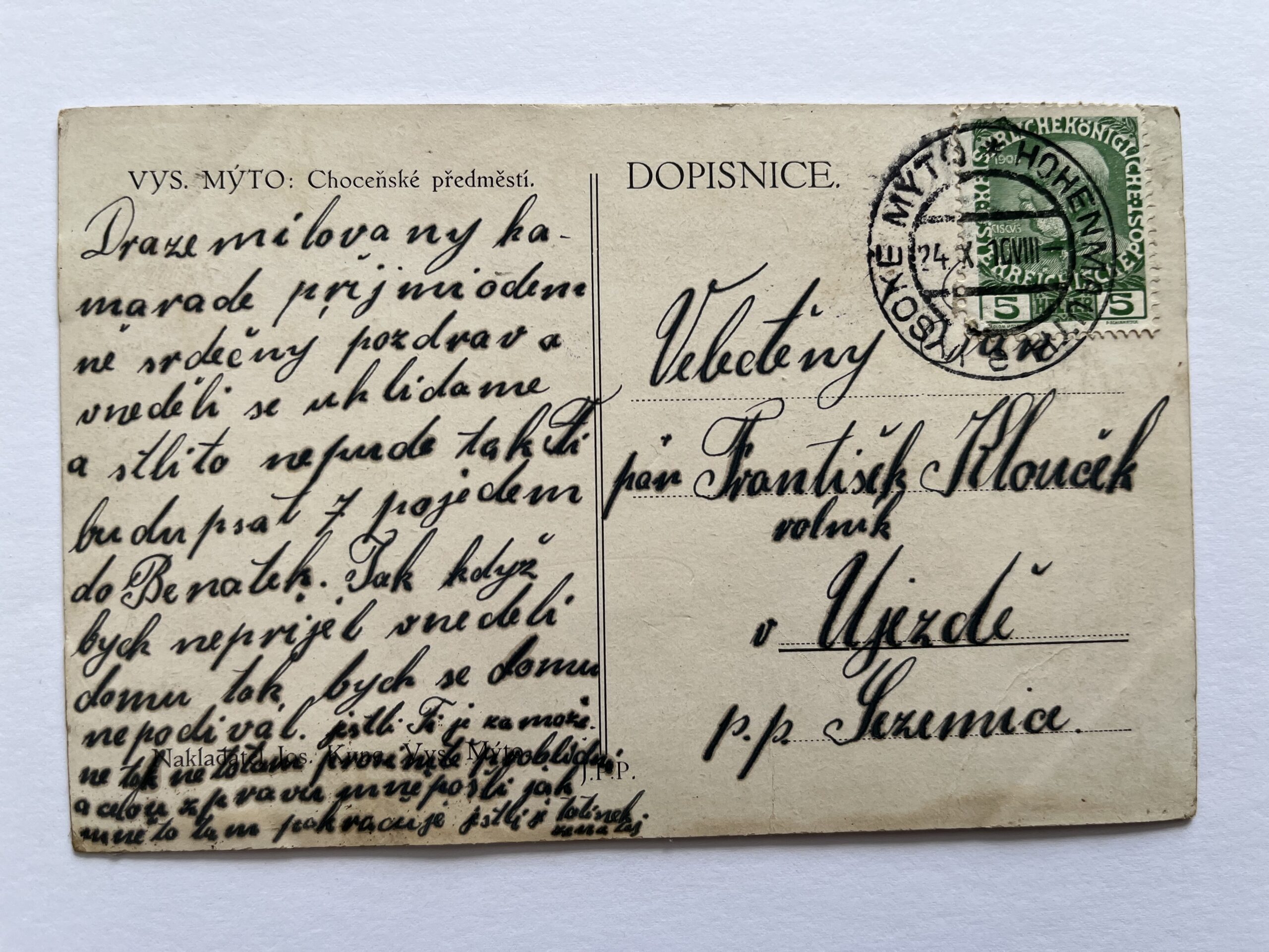 (Ústí nad Orlicí 72) Pohlednice malý formát, prošlá poštou, 1910.