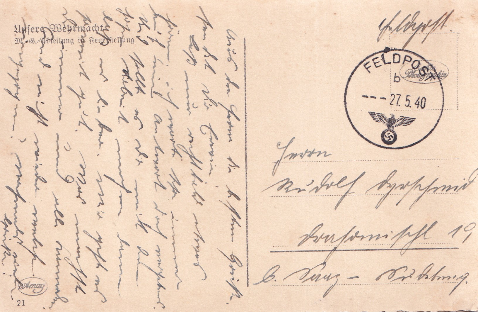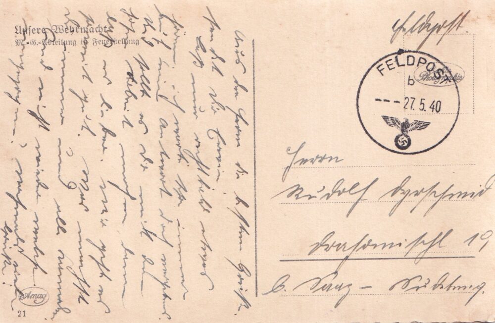 21 (K3-3) Rozměr 14 x 9 cm. Polní pošta 27.5.1940