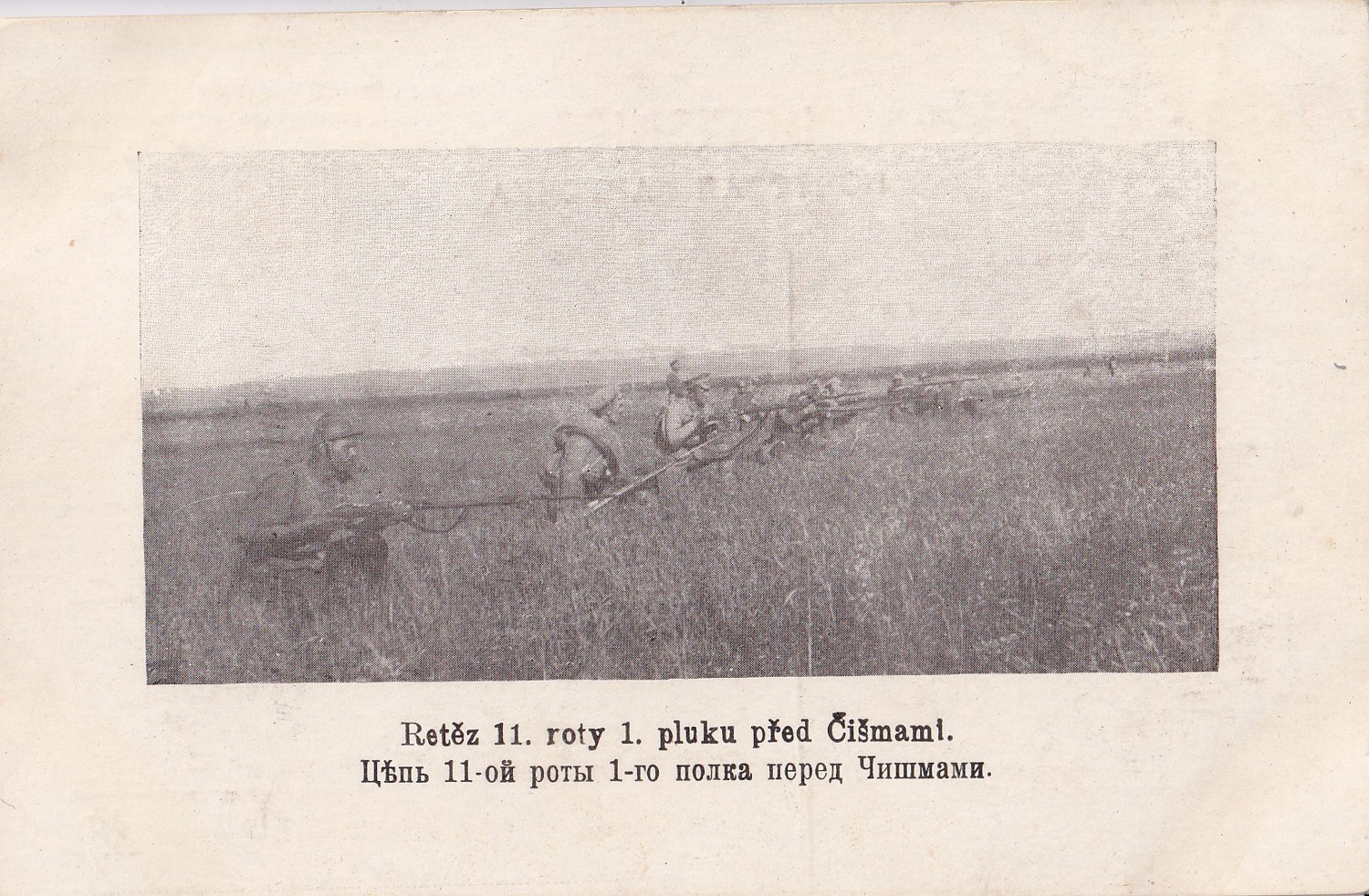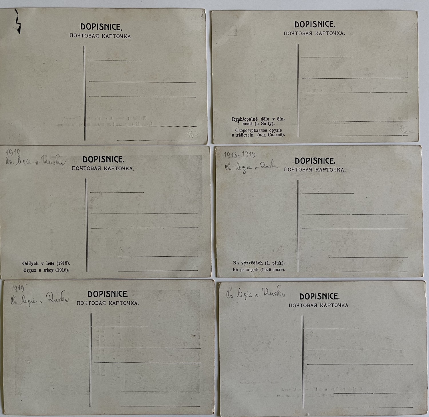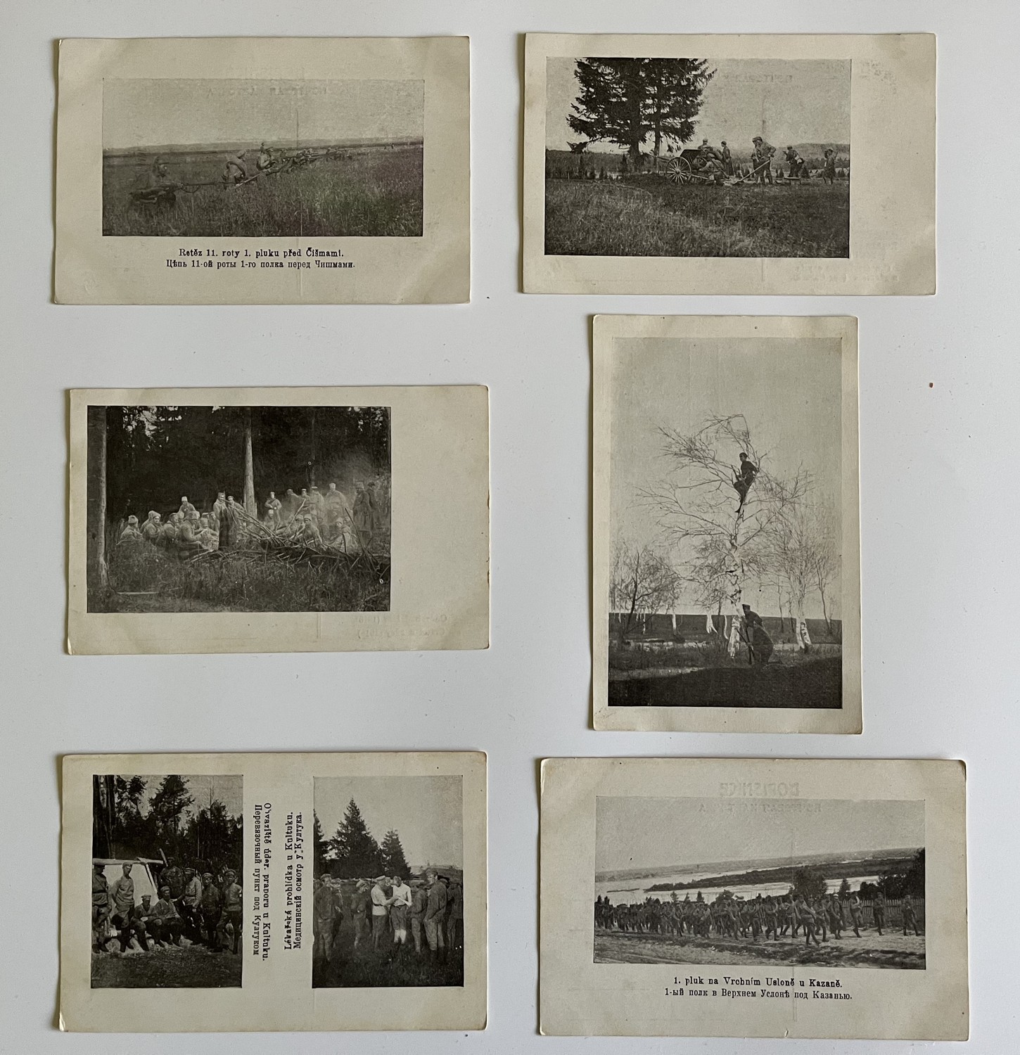 (hhk 1) MF, neprošlé poštou. Pluk na Vrchním Usloně u Kazaně. Oddych v lese 1918. Rychlopalné dělo v činnosti u Sally. Řetěz 11.roty 1. pluku před Čišmami. Lékařská prohlídka u Kultuku. Na výzvědách (1.pluk)