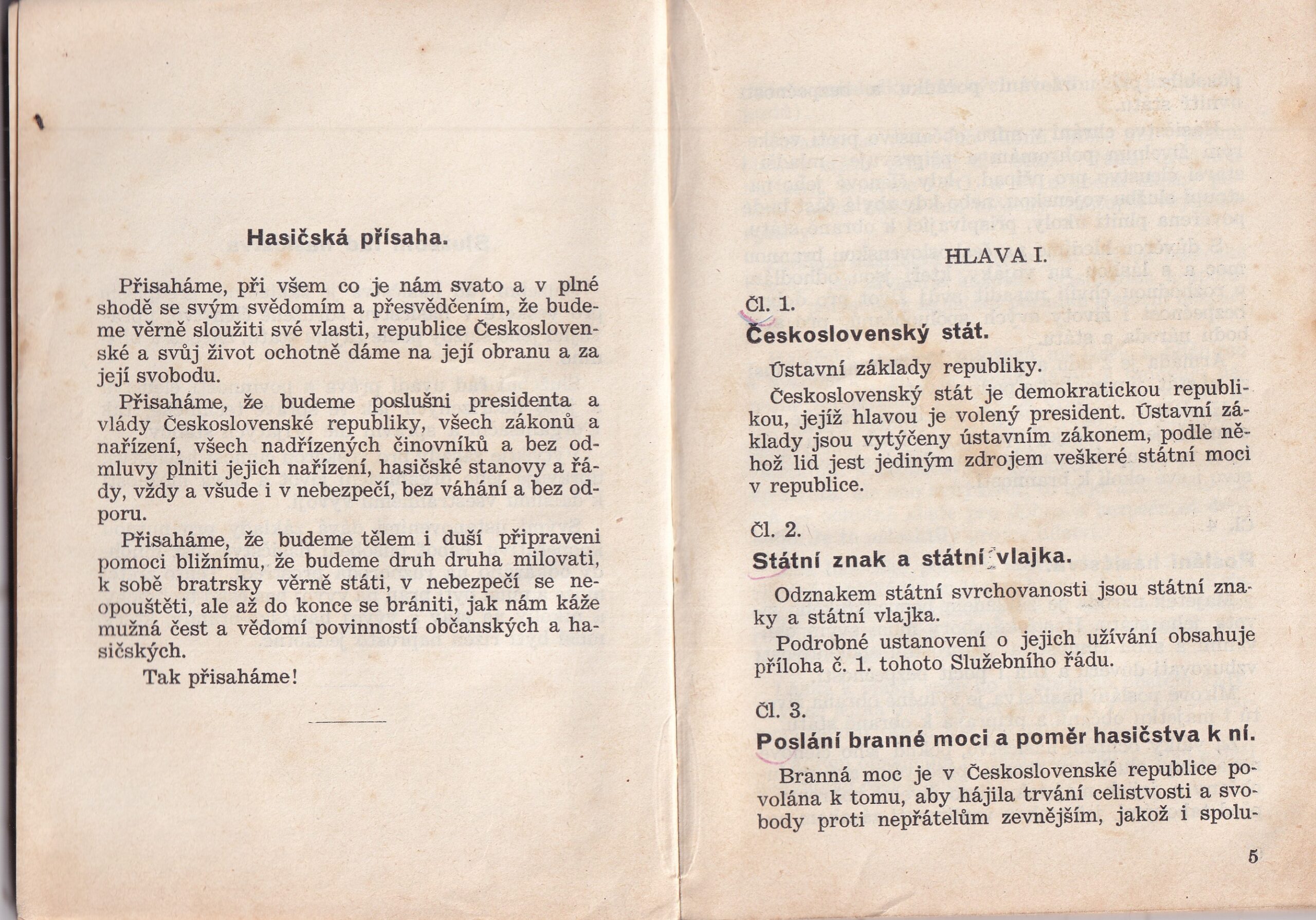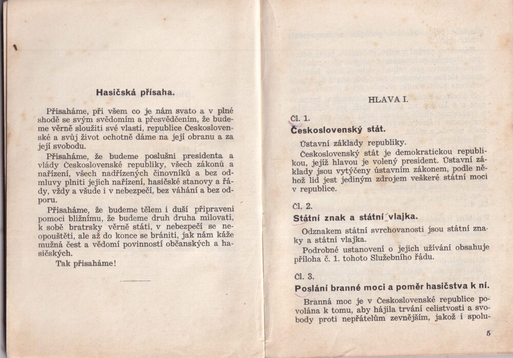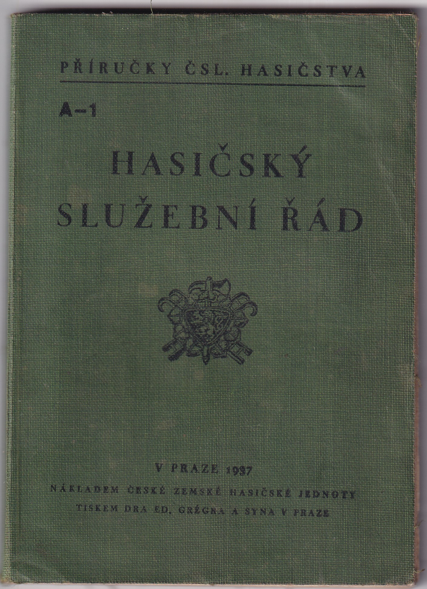 27 (K3-2) Rozměr příručky 11 x 16 cm + Poplachový požární plán obce. Hasičský sbor v Borovíně 15,5 x 21,5 cm. Příručky čsl.hasičstva. A-1 Hasičský služební řád. Nákladem české zemské hasičské jednoty. Praha 1937.