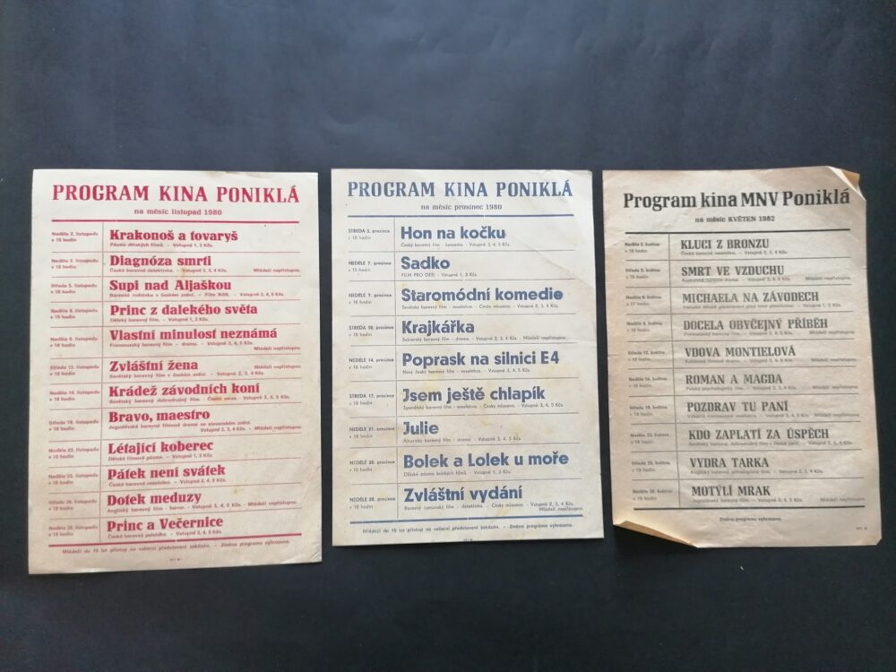 (gge) Rozměr Kino program 30 x 21 cm, plakátek Cena ČS.filmu…Košice 1980 9,5 x 42 cm, plakátek je přehnutý, plakátek Putovní kino 26,5 x 16 cm