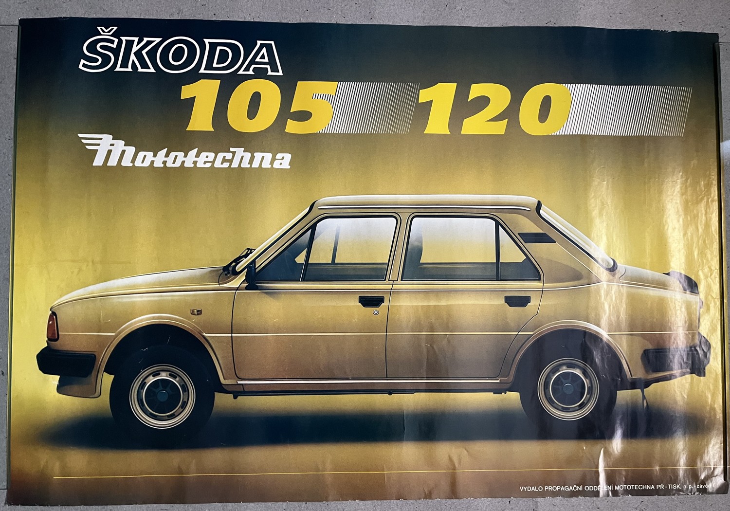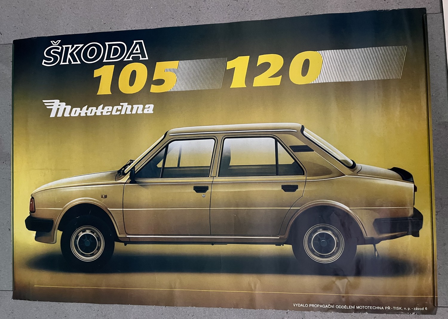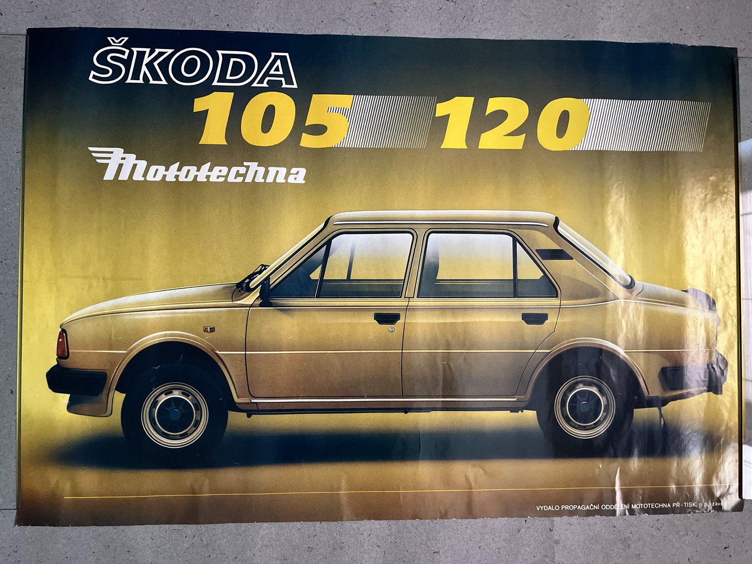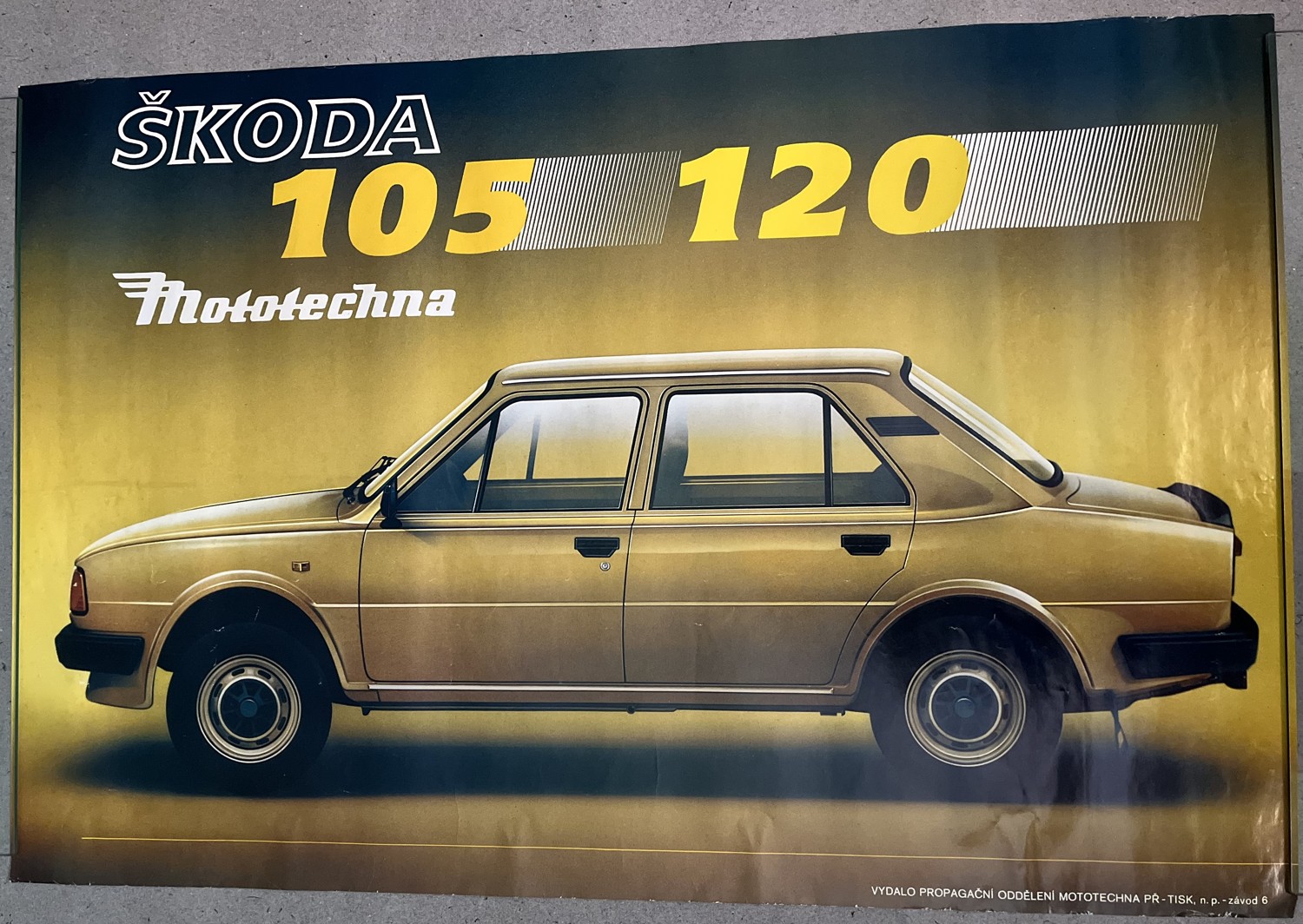 Reklamní plakát ŠKODA 105 / 120 , Mototechna, originál ze socialismu