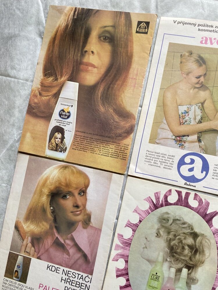 Retro – reklamní letáky Kosmetika Milo Palette vital,Rakona-Avela…10 ks
