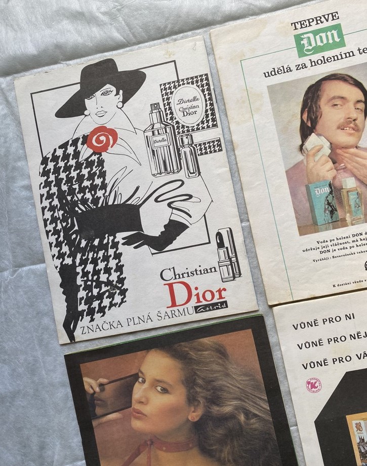 Retro - reklamní letáky Kosmetika-zn.Christian Dior,20 HP,Don,AB...7 ks