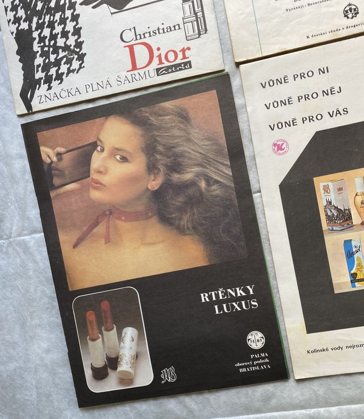 Retro – reklamní letáky Kosmetika-zn.Christian Dior,20 HP,Don,AB…7 ks
