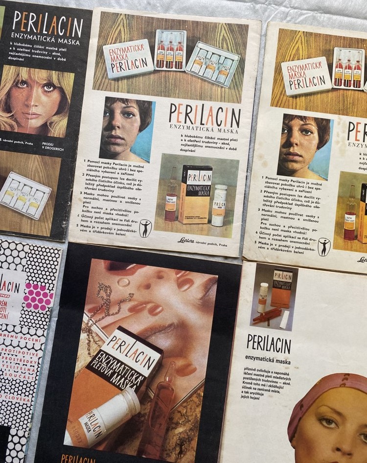Retro - reklamní letáky Léčiva-léčebná kosmetika  PERILACIN, 8 ks