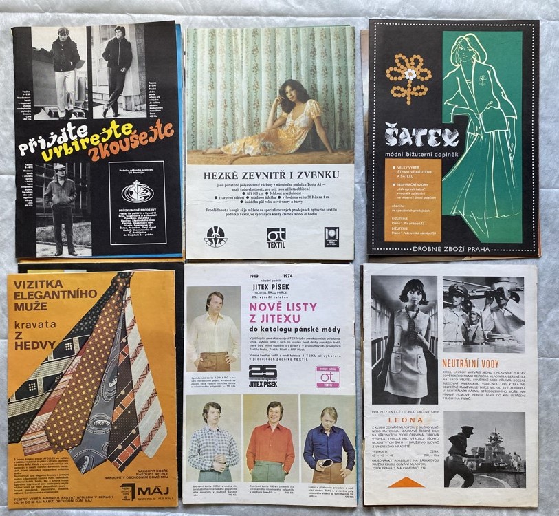 HomeObchodLetákyRetro – reklamní letáky Šatex, Tosta, Textil, Jitex Písek, kravaty…14 ks