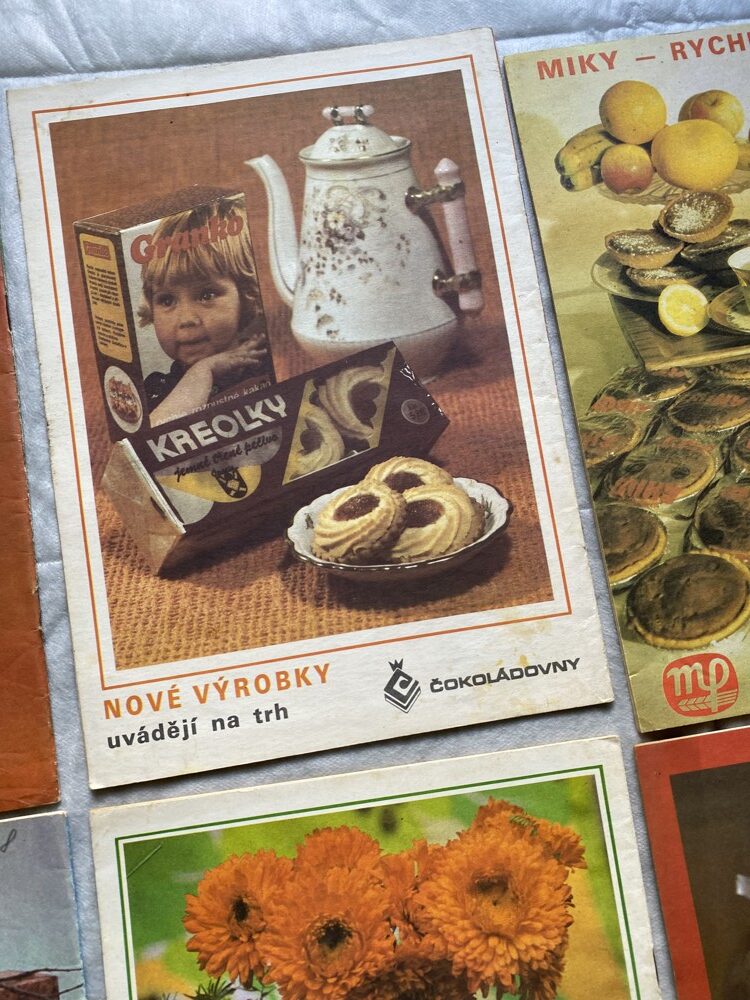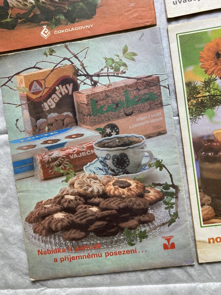 • Retro reklamní letáky Cukrovarnický průmysl,zákusky,dorty k MDŽ 11 ksSold