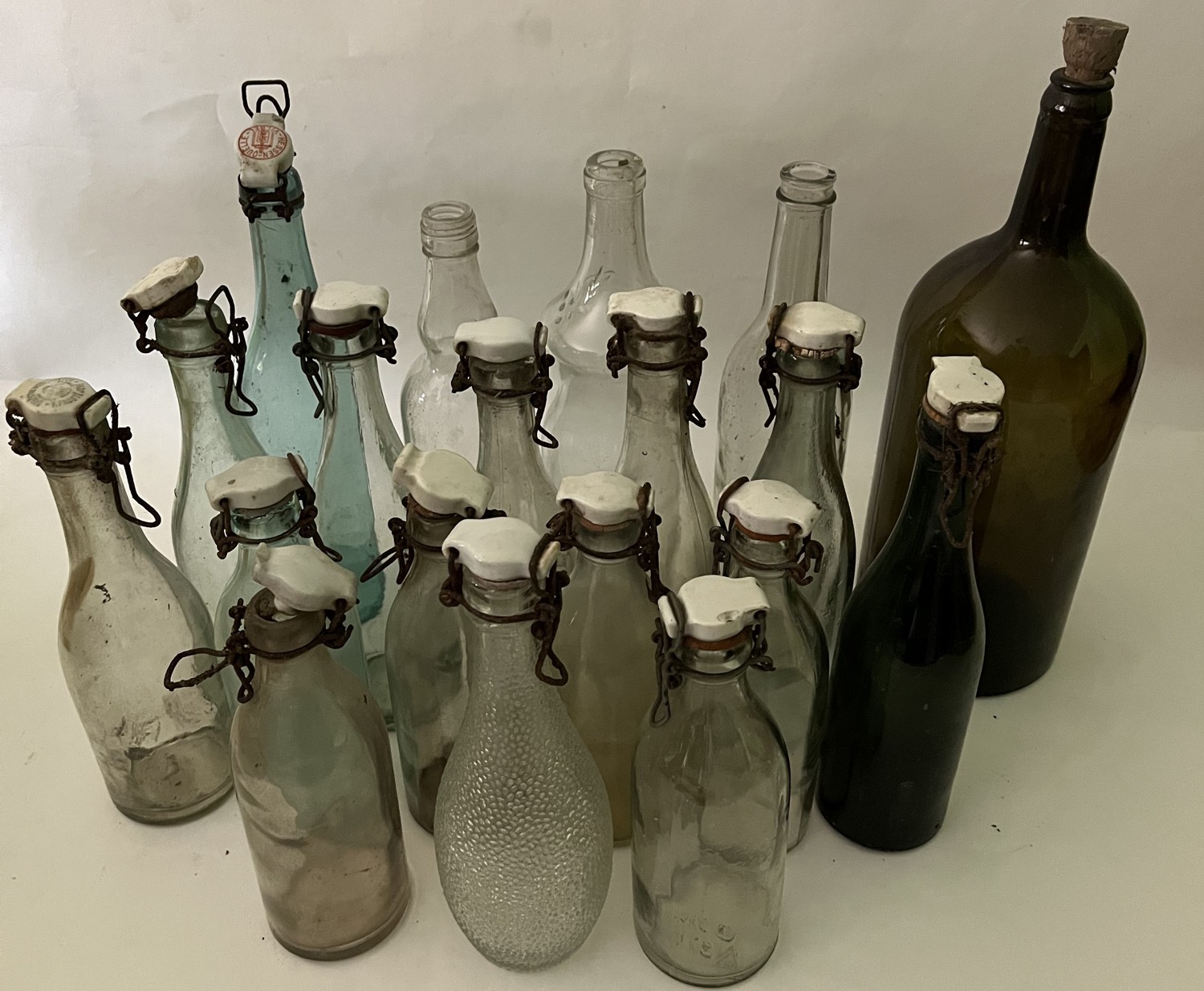 40 (t1) Různé tvary a velikosti, převážně 0,33 l.15 ks s porcelánovým uzávěrem, 1x láhev s keramickou zádkou – Družstvo hostinských v Prostějově 0,33 l. 1 x prasklá 0,33 l. 4 ks bez zátky. 1 x láhev 2 l., 1 x Polmos 0,5 l.