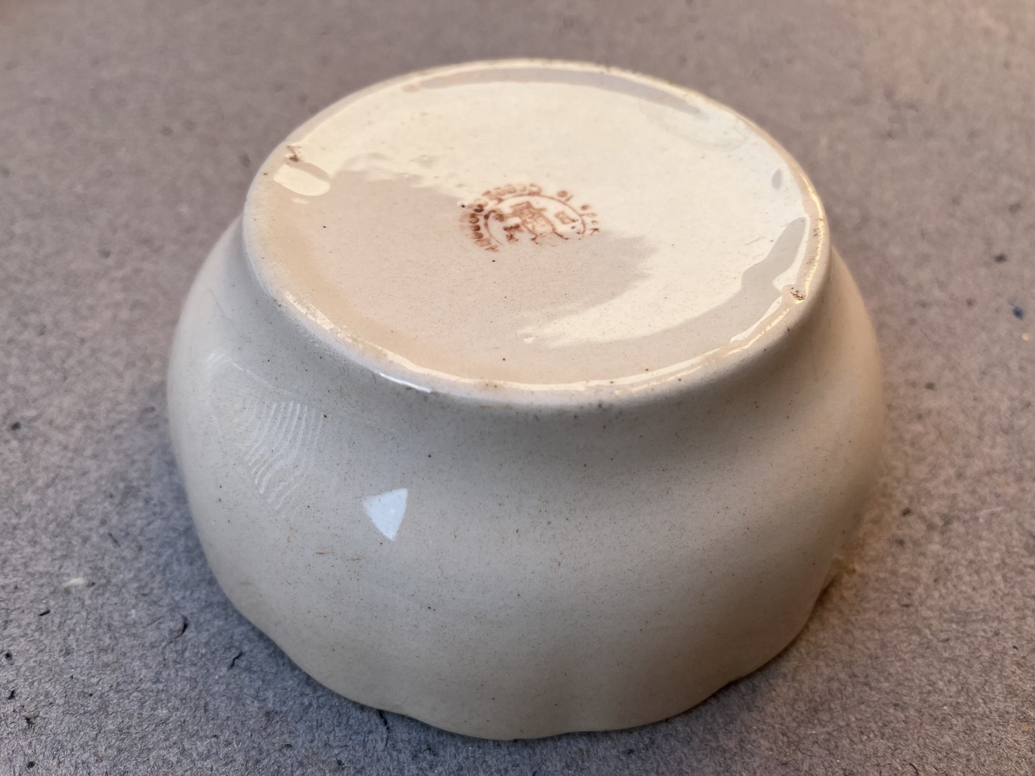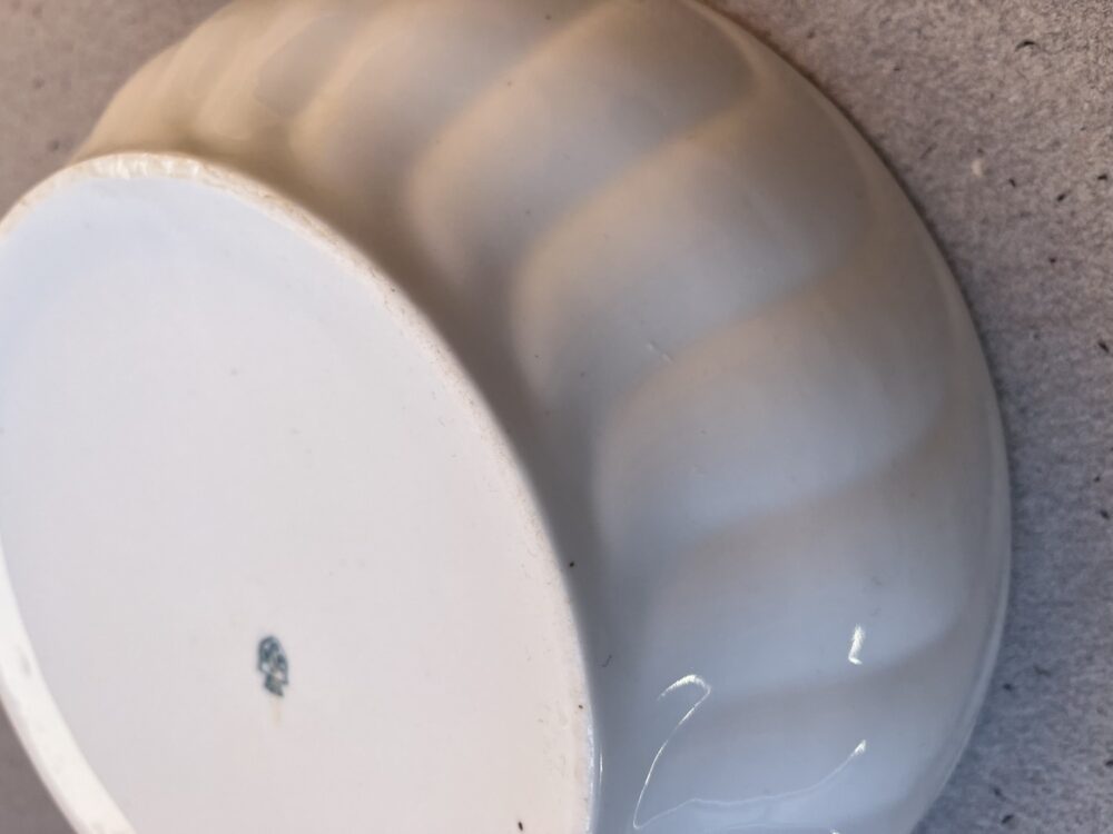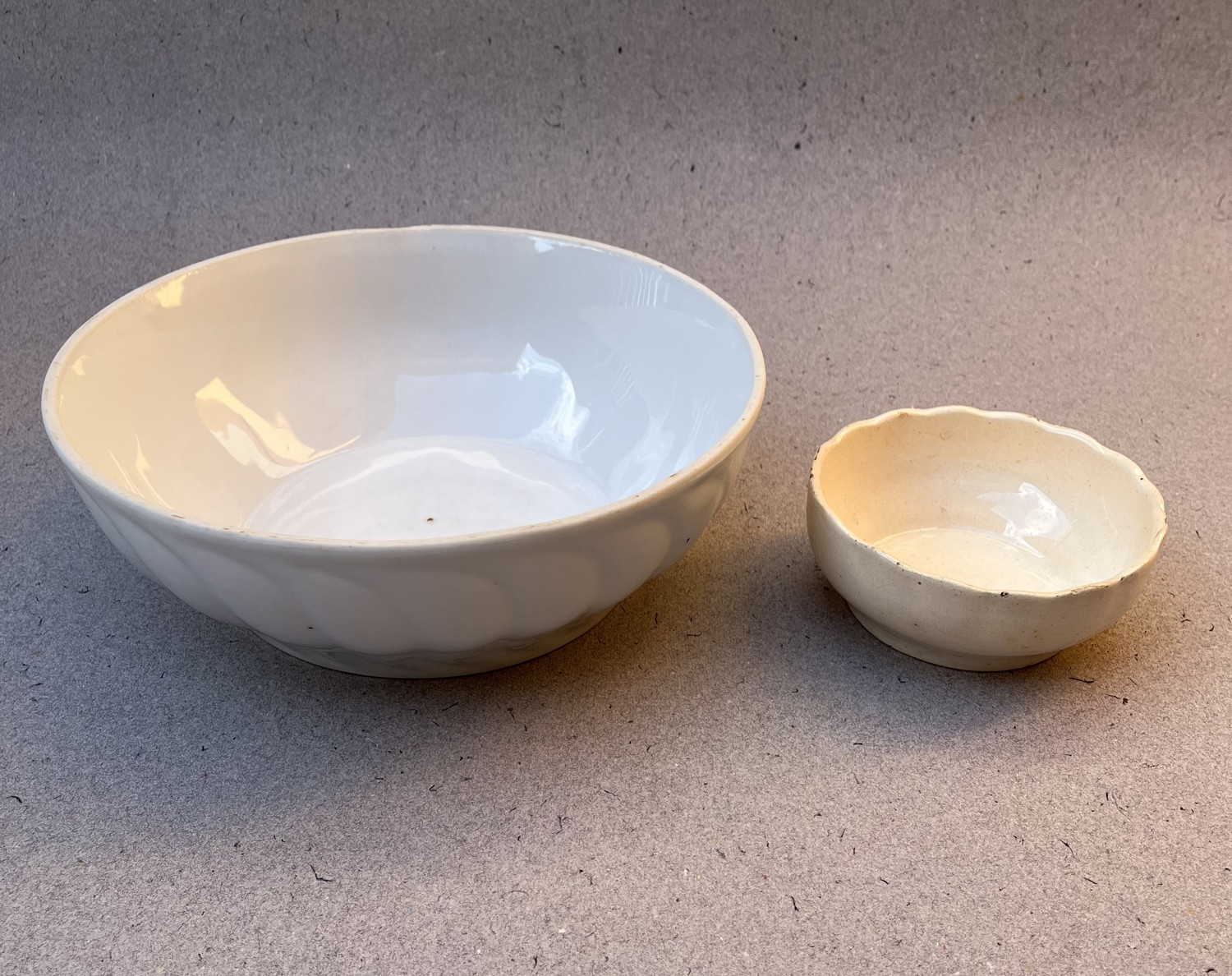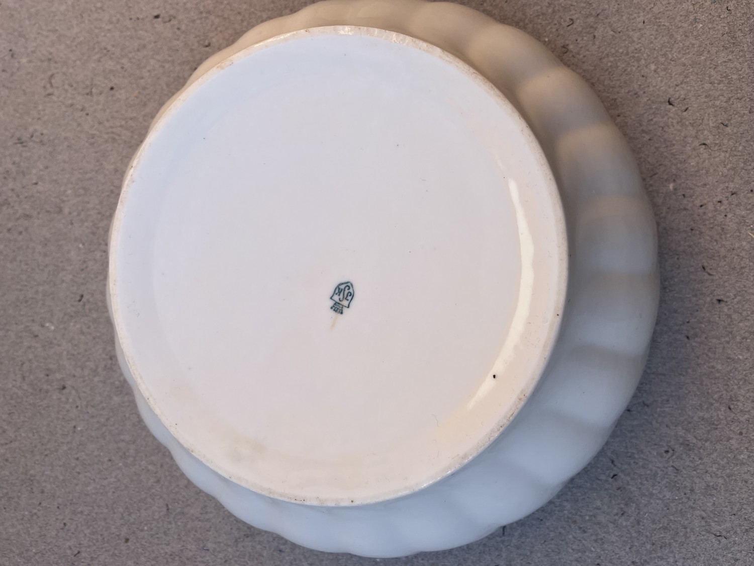 58 (t1) 1.pol.20.stol. Rozměr: 1 x mísa průměr 28,5 cm, v. 10 cm, značka porcelánky ve Stružné. 1 x miska s oťuky průměr 14,5 cm, v.6 cm.