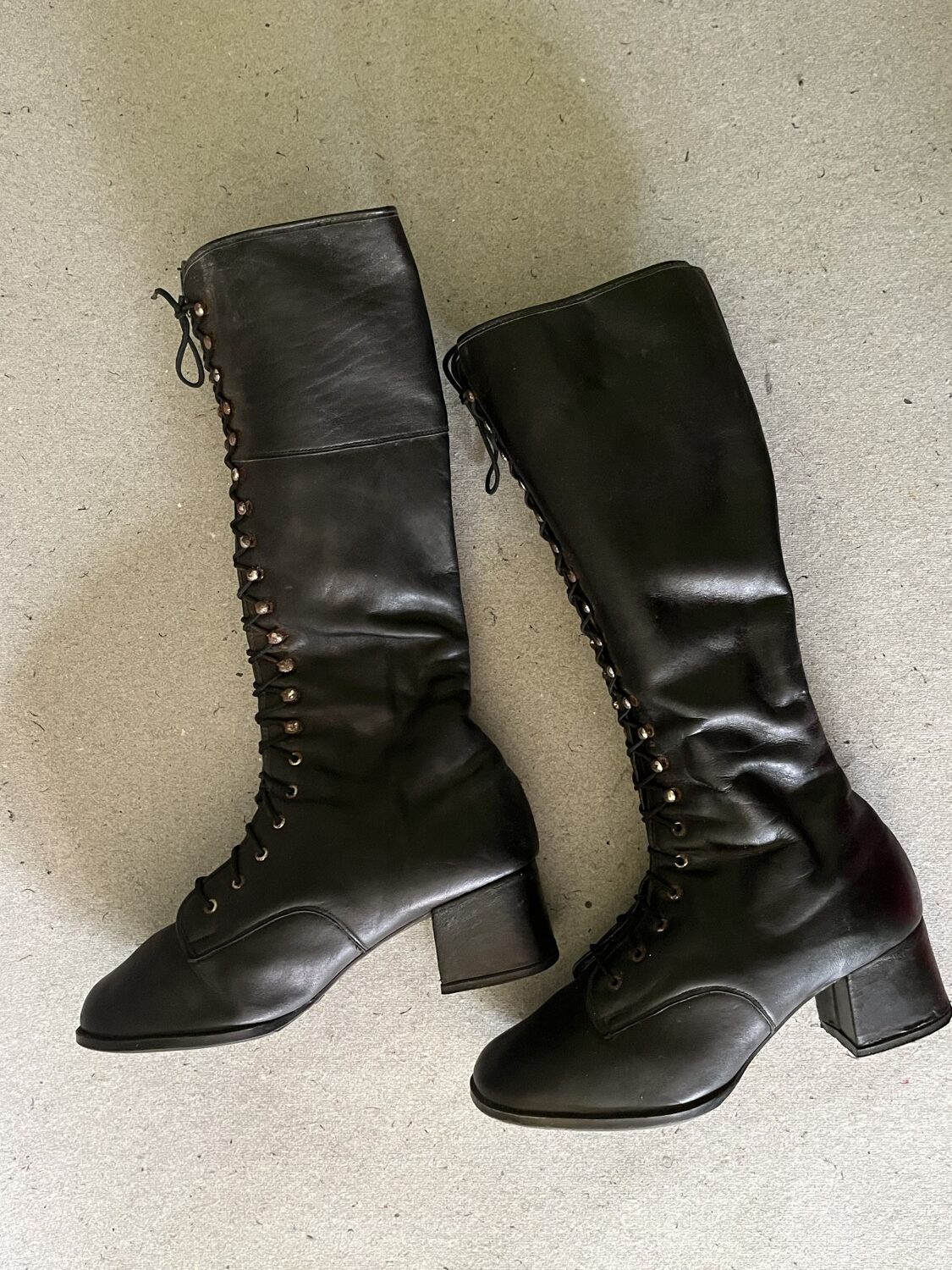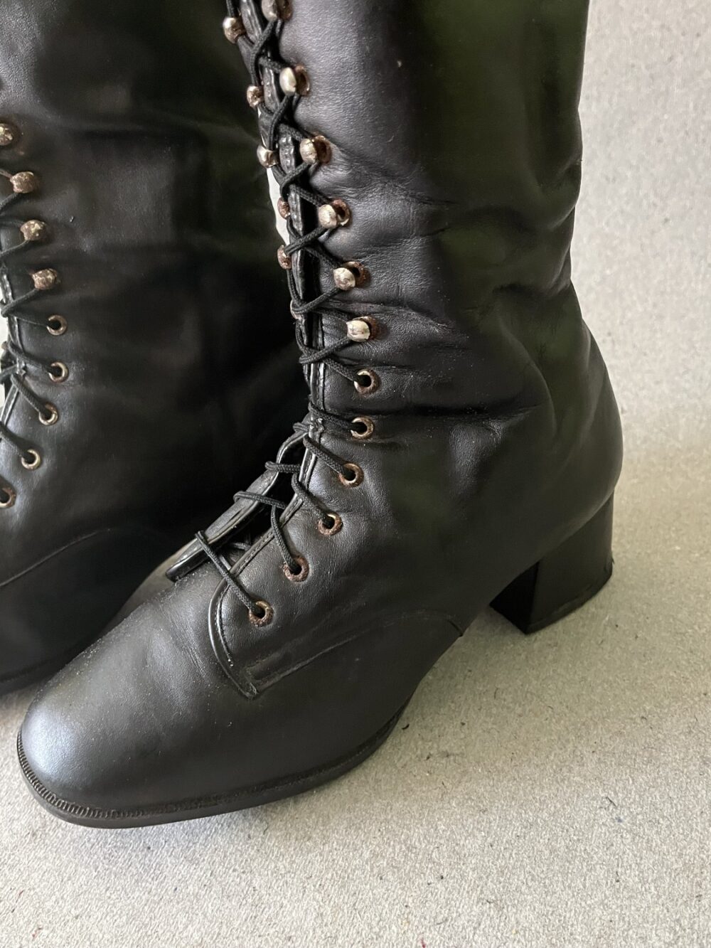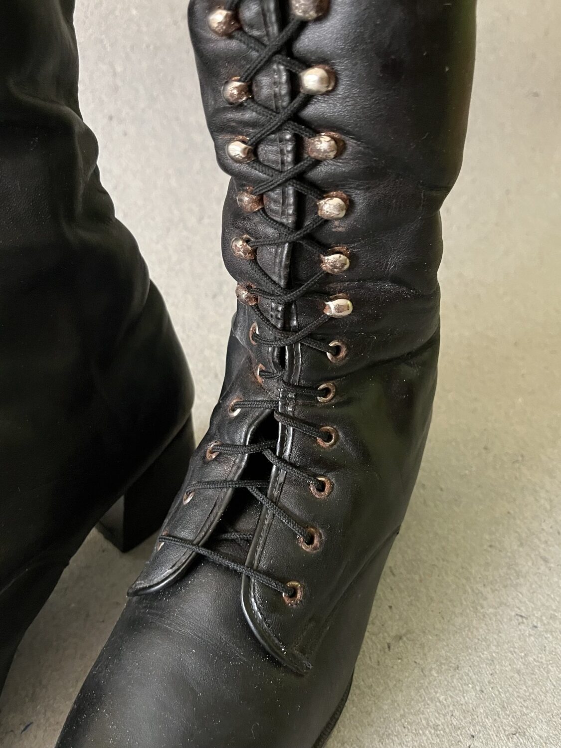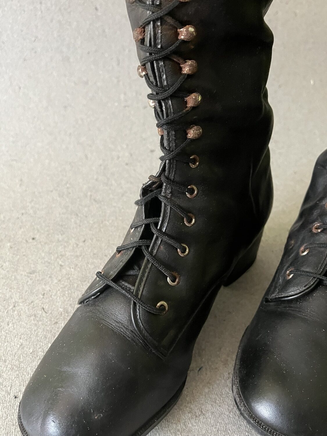 Starožitné dámské černé boty vysoké na šněrování - Obrázek 6