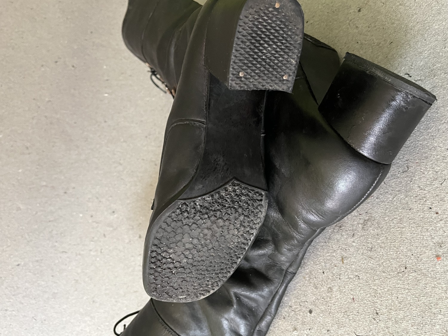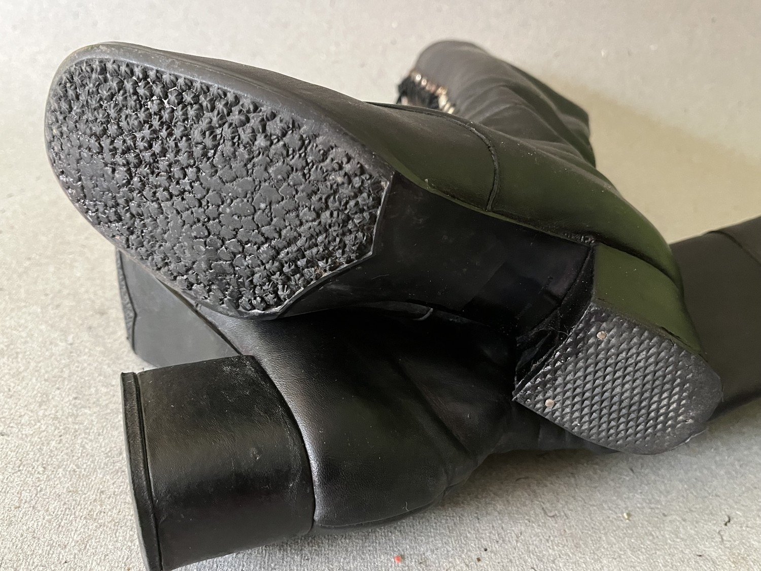 30 (t3) Délka podrážky 24 cm, cca 23 cm vnitřní velikost stélky. Na kovových částech rez, boty jsou v zachovalém stavu. Boty vhodné k divadlu, na veteránské akce, dobové akce ap. Období 50-80.léta. Máme i další páry, pokud by někdo hledal něco specifického nebo konkrétní velikost.