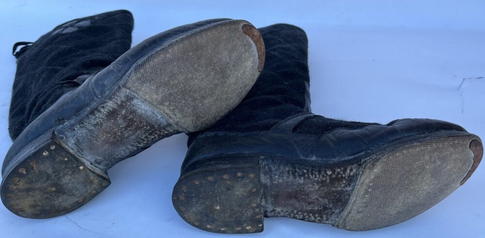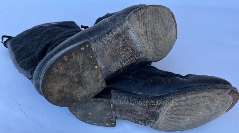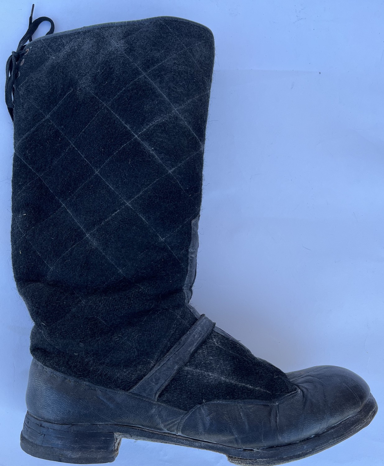 14 (t2) Velikost: Délka podrážky 29 cm, celková výška 35 cm, v zadní části šněrování 4 cm. Podrážky podbité, špička kovem.