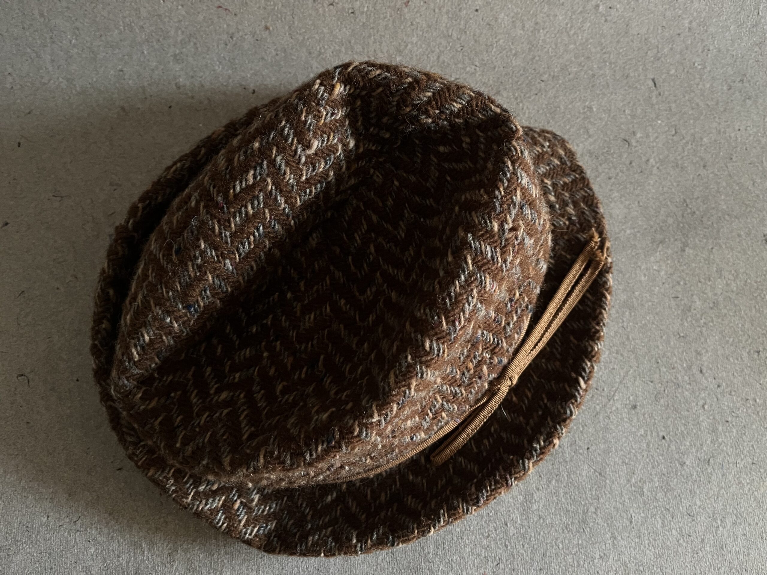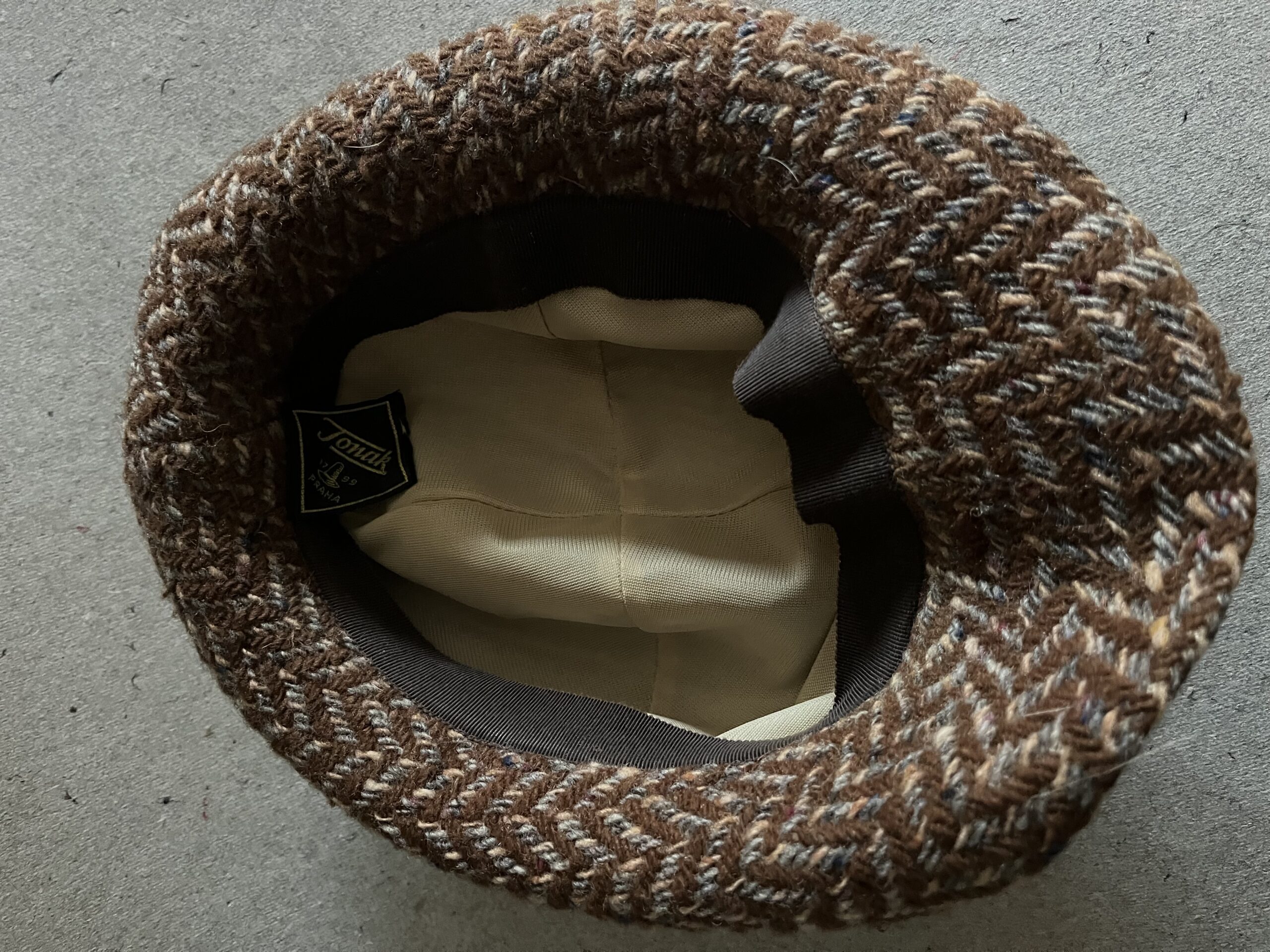 AS-3 Dámský vlněný klobouček hnědé barvy, Tonak, orig.štítek. Dříve běžná součást šatníku každé ženy. 2.pol.20.století