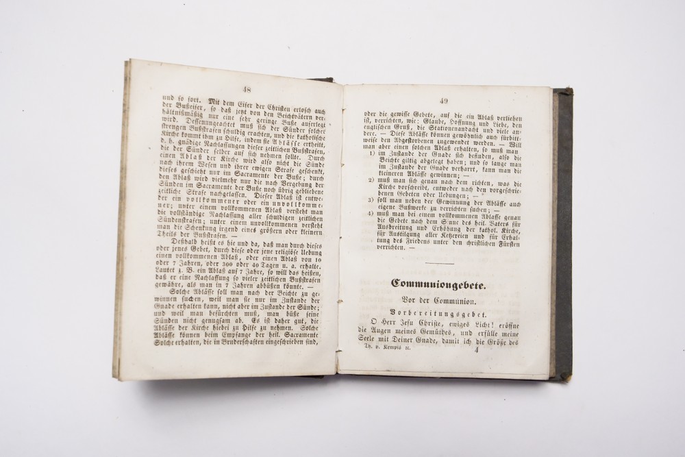 18 (ggm) Kniha náboženského charakteru s obrázky Následování Krista Thomas von Kempis Von der Nachfolge Christi, Stuttgart 1850 Rozměr 10 x 13,5 cm, 400 stran + obsah