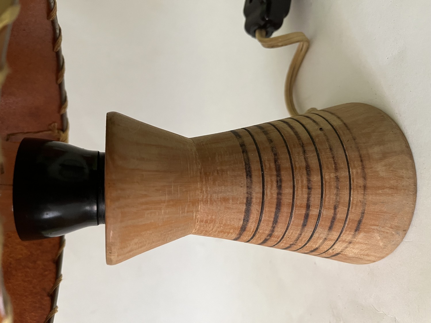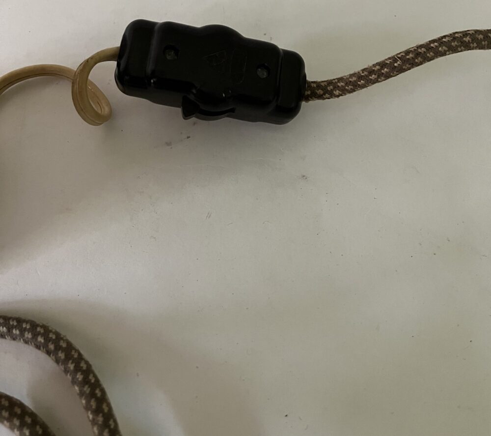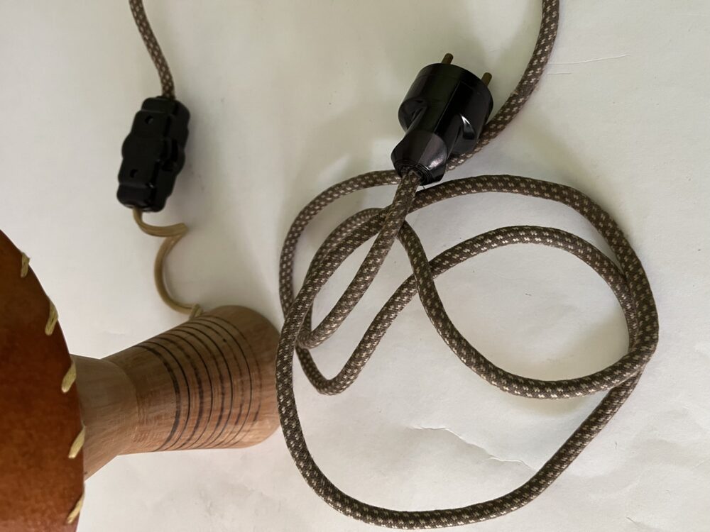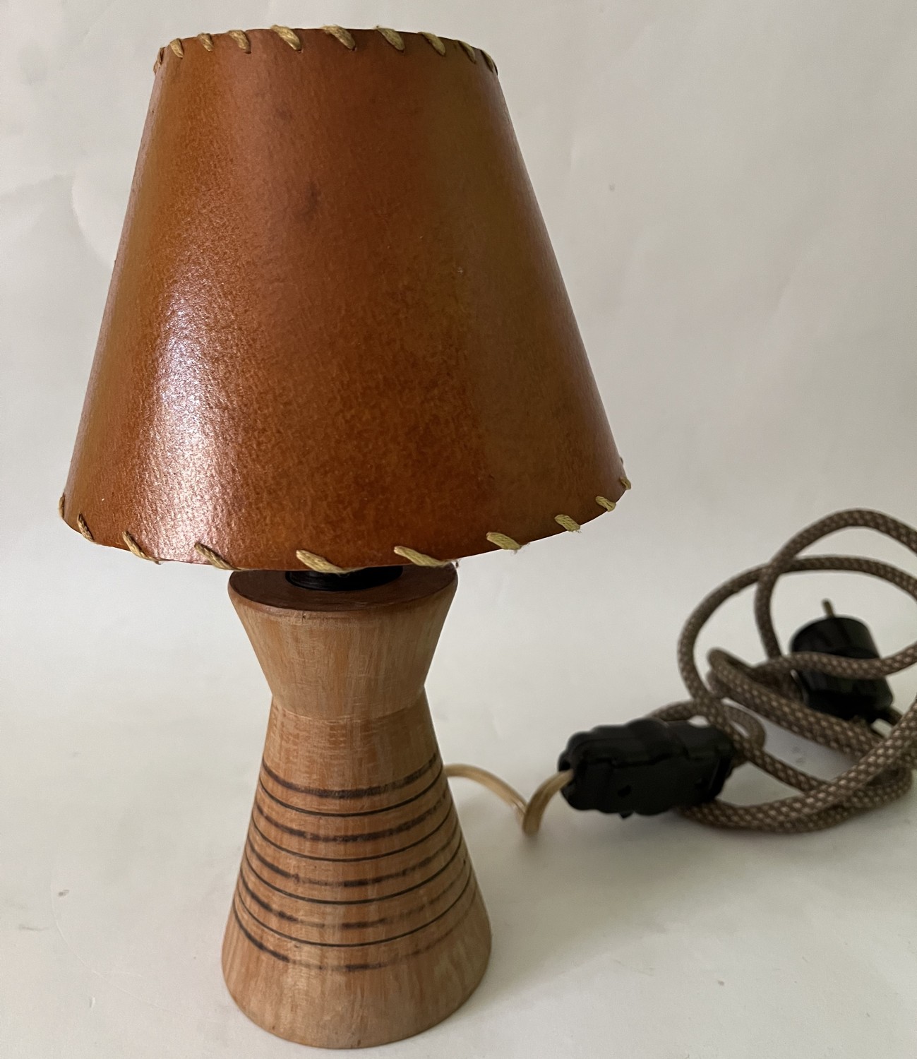 43 (t1) Rozměr: Výška 25 cm, průměr stínidla dolní část 14 cm, horní část 8 cm. Lampička je funkční, má původní šňůru a bakelitový vypínač.