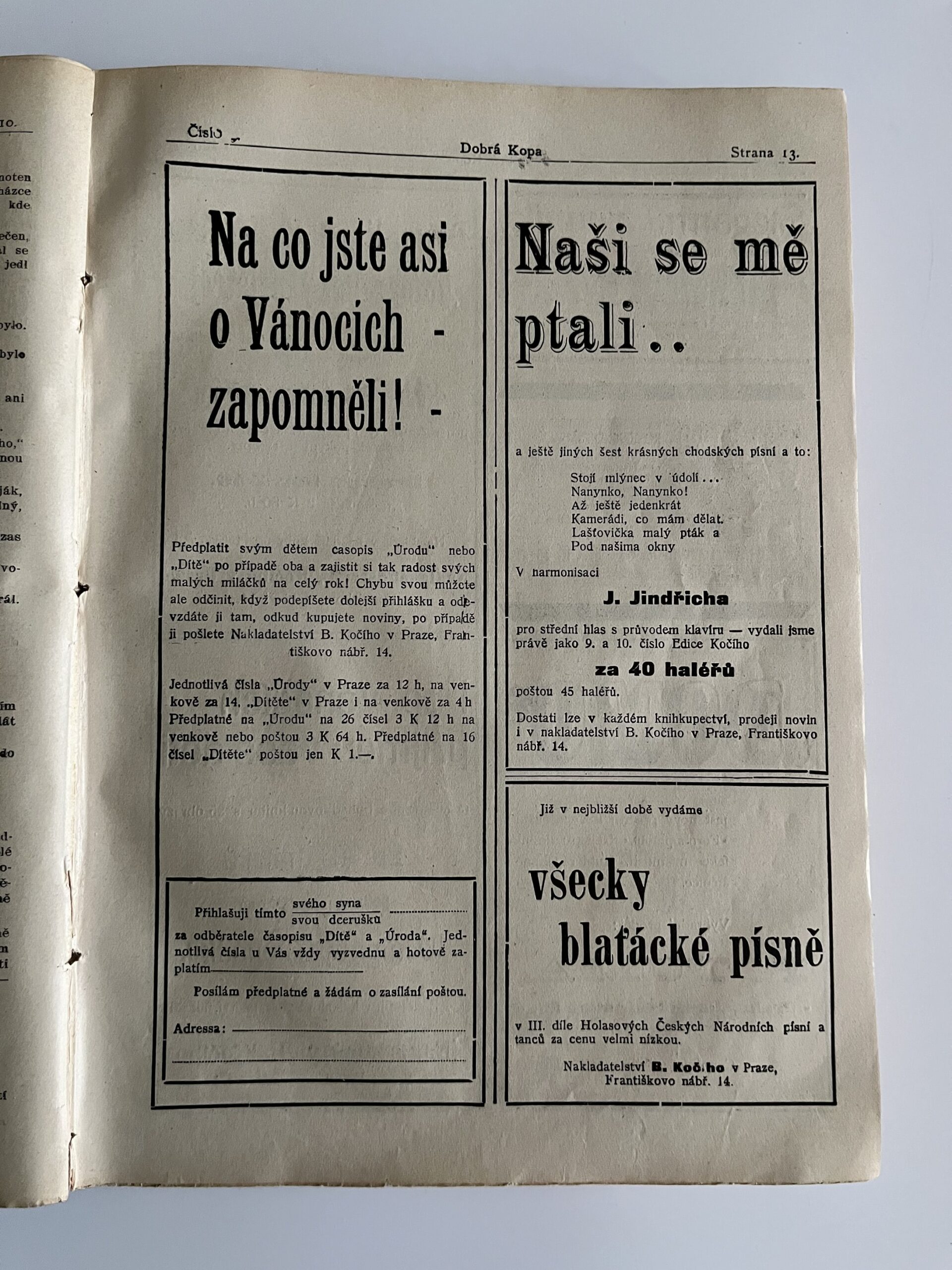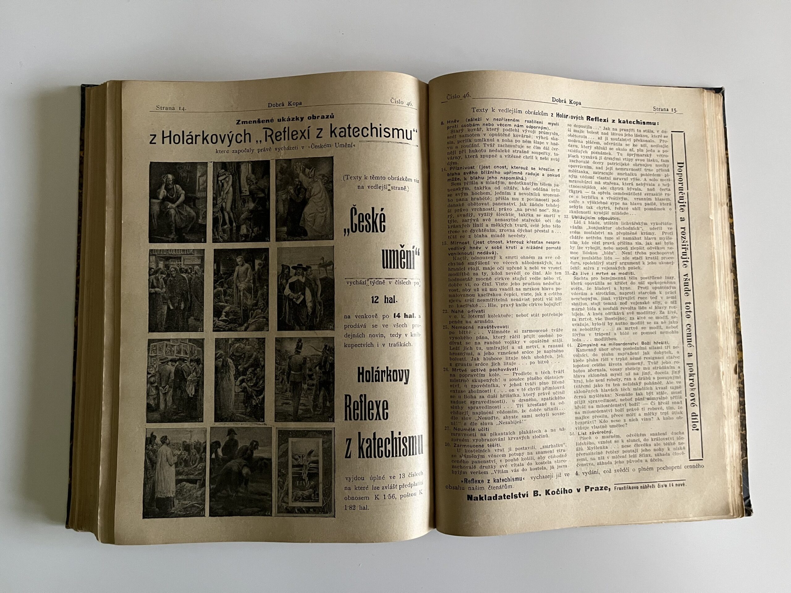 HHY Rozměr: 19 x 26 cm. Svázaný illustrovaný humoristický týdeník – Dobrá Kopa r.1908/1909 52 čísel.