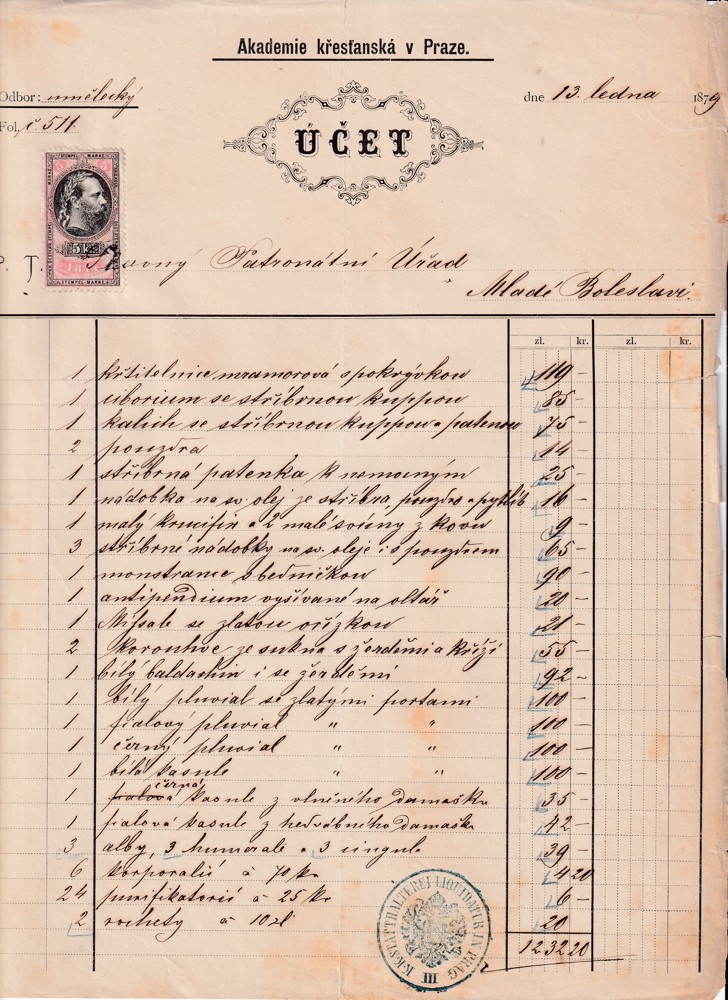 HomeObchodÚčtyÚčet, Akademie křesťanská, Praha, 1879
