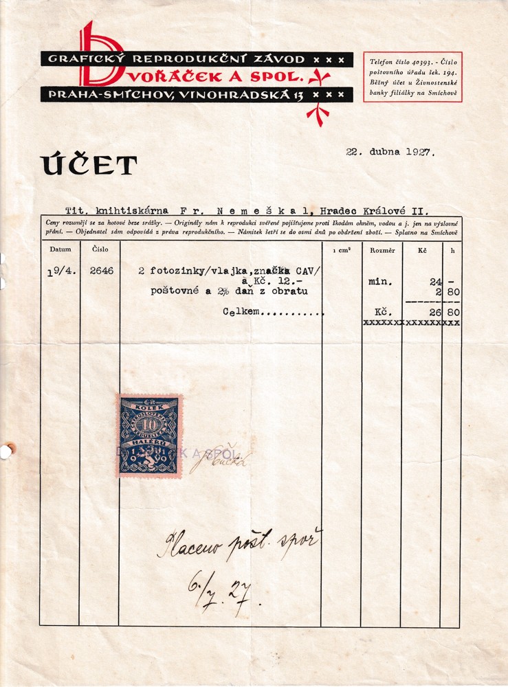 HomeObchodÚčtyÚčet, Grafický reprodukční závod, Praha, 1927