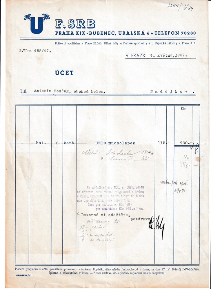 HomeObchodÚčtyÚčet, Obchod koloniální, Praha, 1947