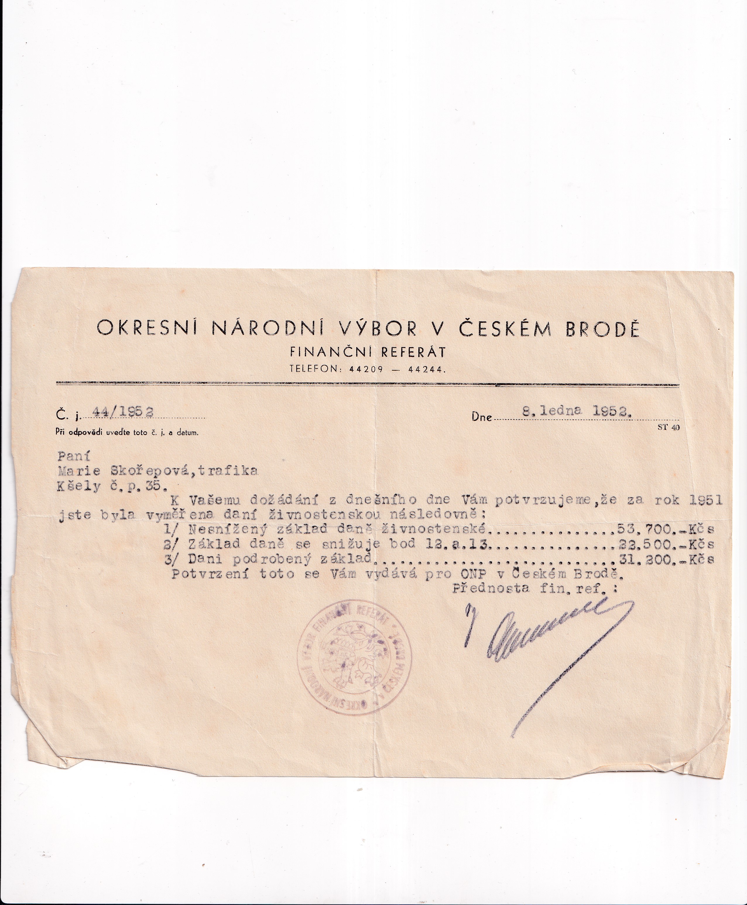 HomeObchodÚčtyÚčet, Okresní národní výbor, Č. Brod, 1952
