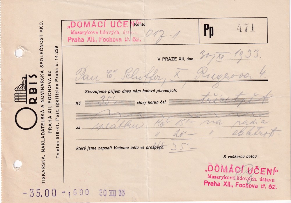 HomeObchodÚčtyÚčet, Orbis, tisk, nakladatelství, Praha, 1933