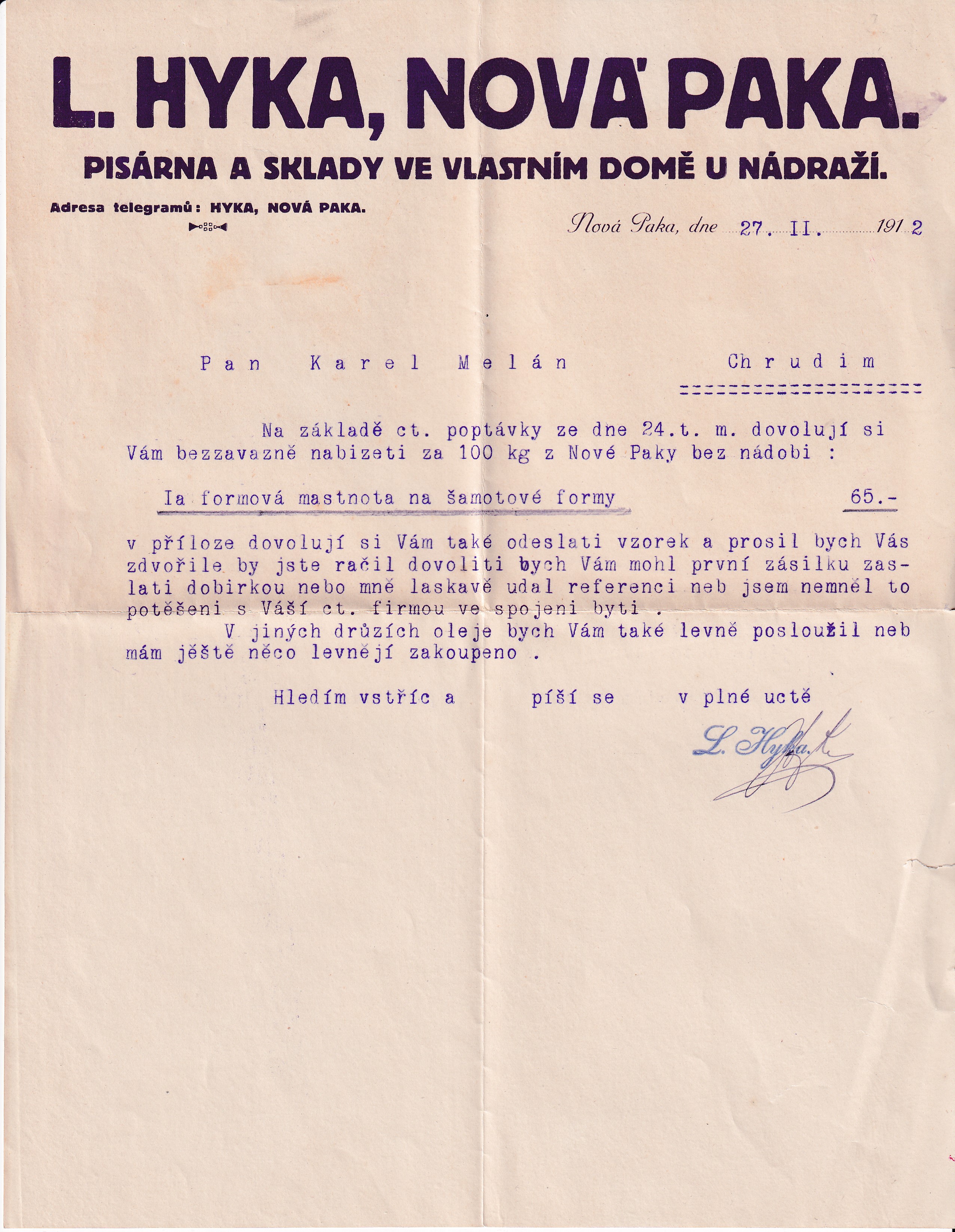HomeObchodÚčtyÚčet, Písárna a sklady, Chrudim, 1912