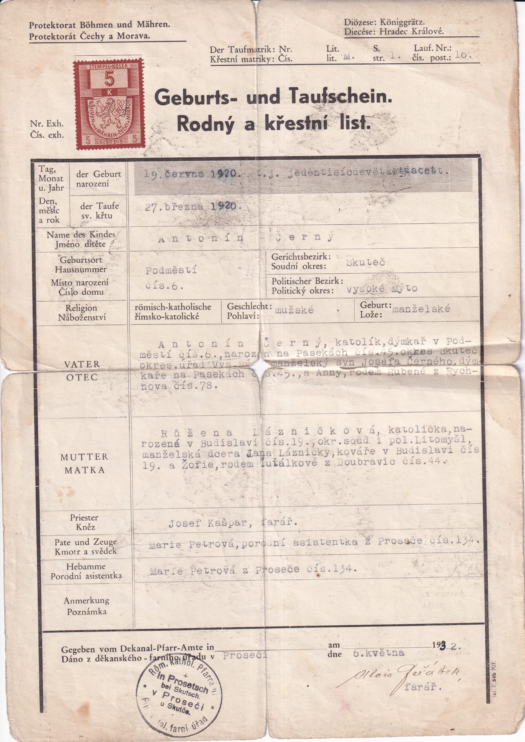 HomeObchodÚčtyÚčet, Rodný a křestní list, Proseč, 1932