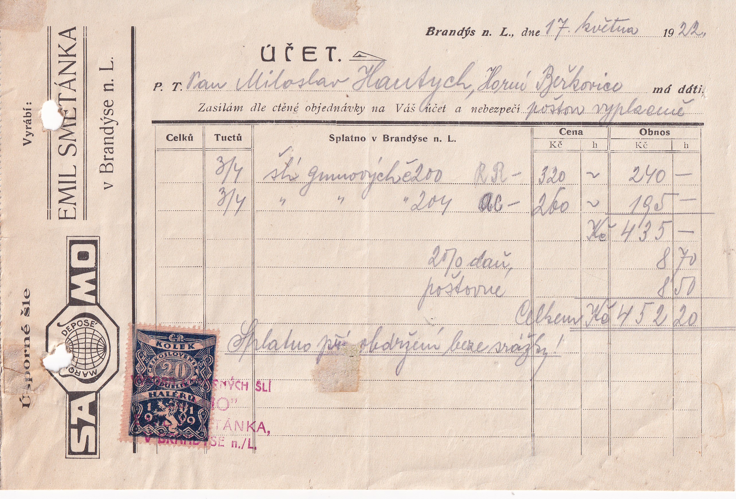 HomeObchodÚčtyÚčet, Samo, Praha, 1922