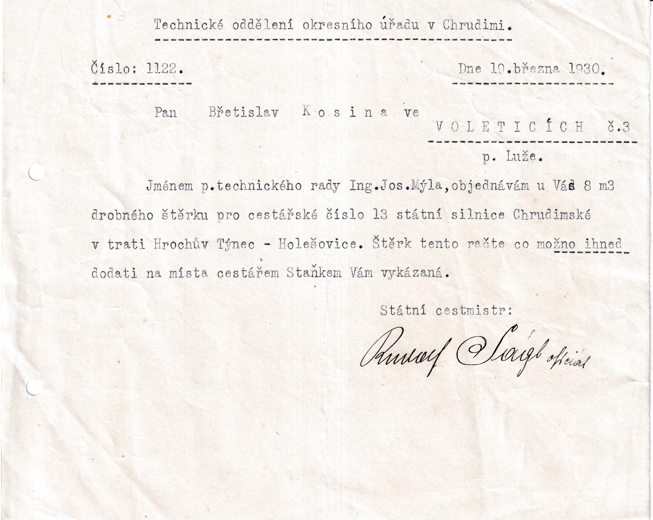 HomeObchodÚčtyÚčet, Techn. oddělení, okr. úřad, Chrudim, 1930