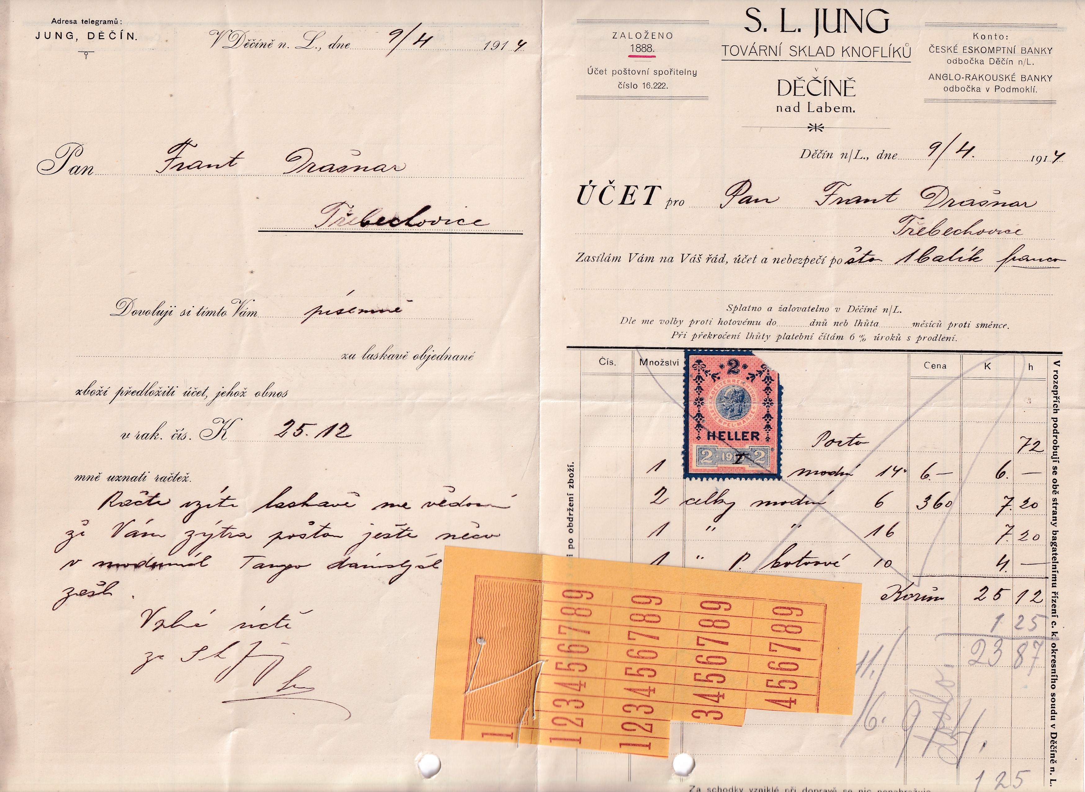 HomeObchodÚčtyÚčet, Tov. sklad knoflíků, Děčín n. Labem, 1917
