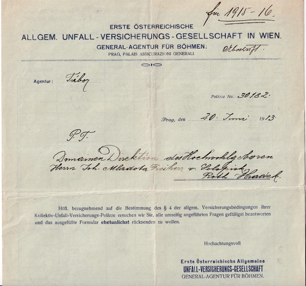 HomeObchodÚčtyÚčet, Všeobecné úrazové pojištění, Praha, 1913