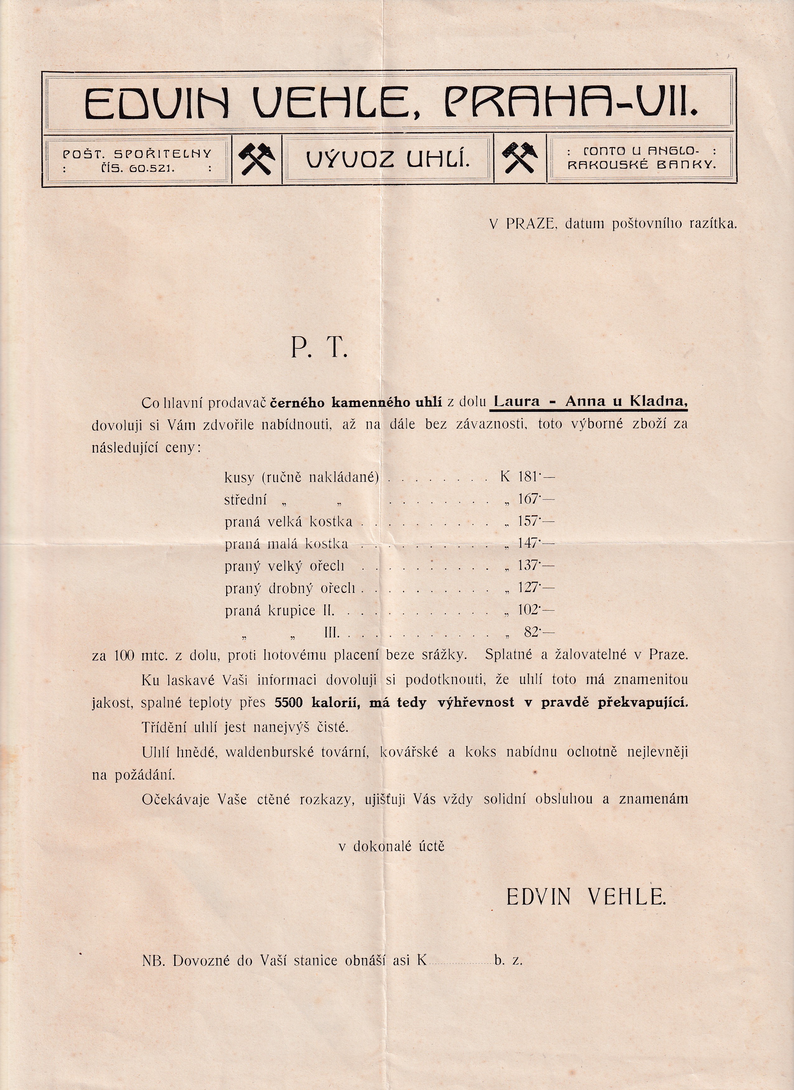 HomeObchodÚčtyÚčet, Vývoz uhlí, Edvon Vehle, Praha