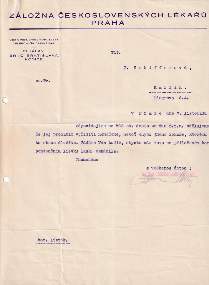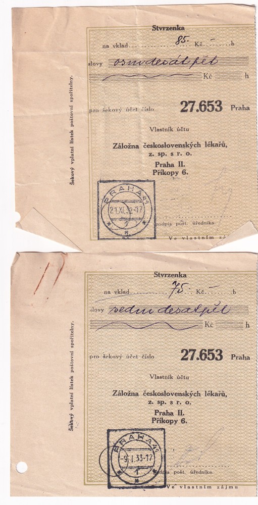 HomeObchodÚčtyÚčet, Záložna ČSL lékařů, Praha Karlín, 1932