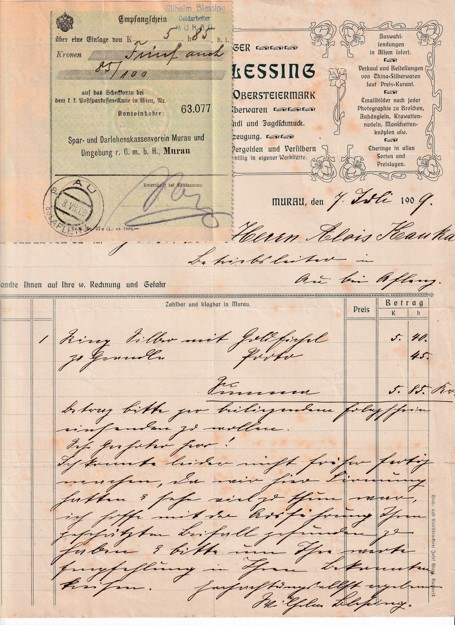 HomeObchodÚčtyÚčet zlatnictví Wilhelm Blessing, Murau