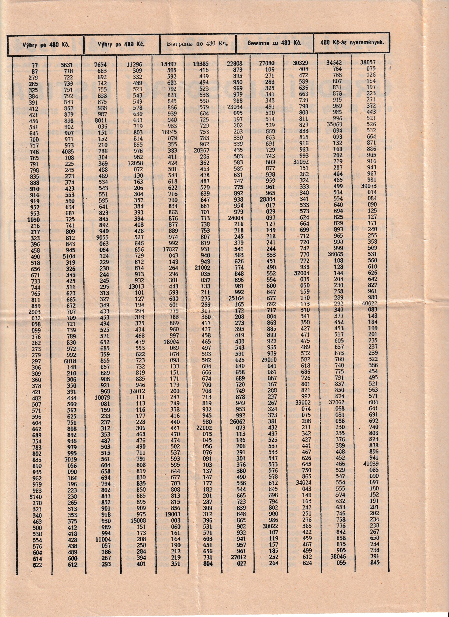 Úřední slosovací listina, ředitelství státních loterií Praha srpen1934 - Obrázek 2
