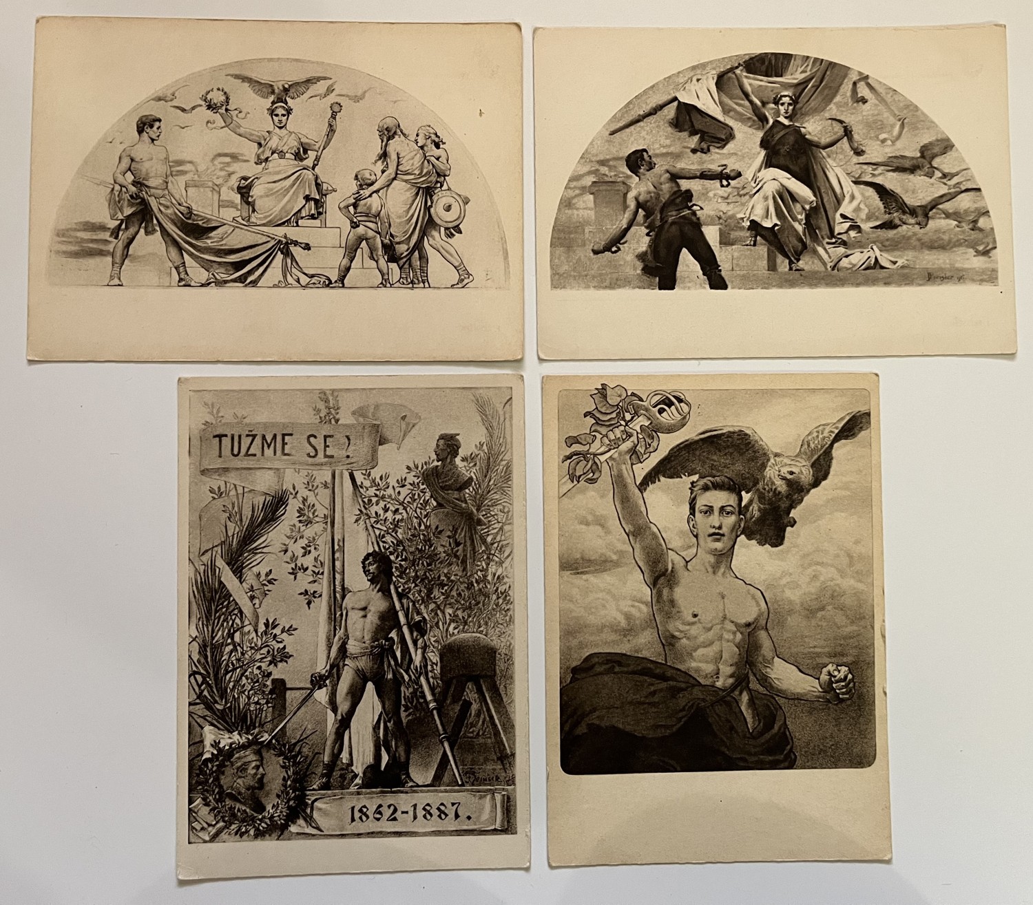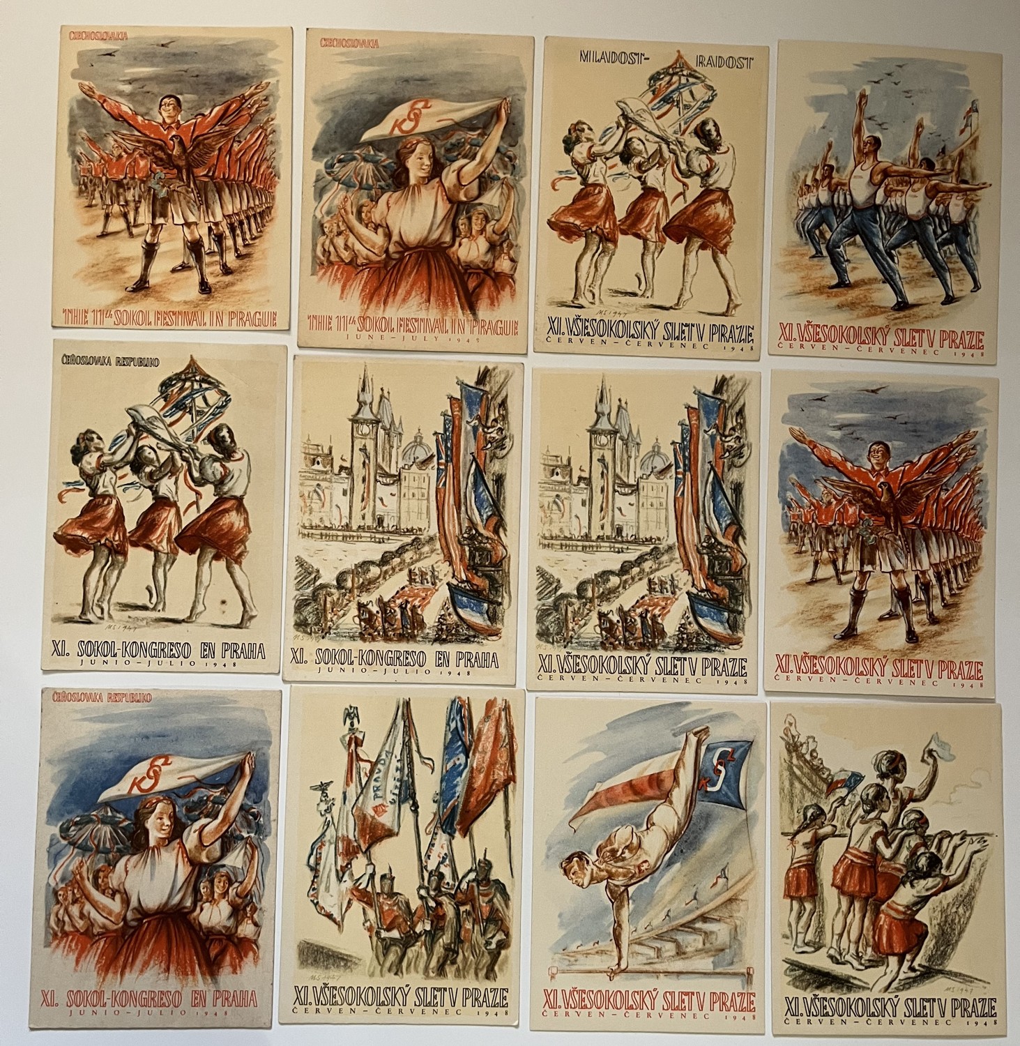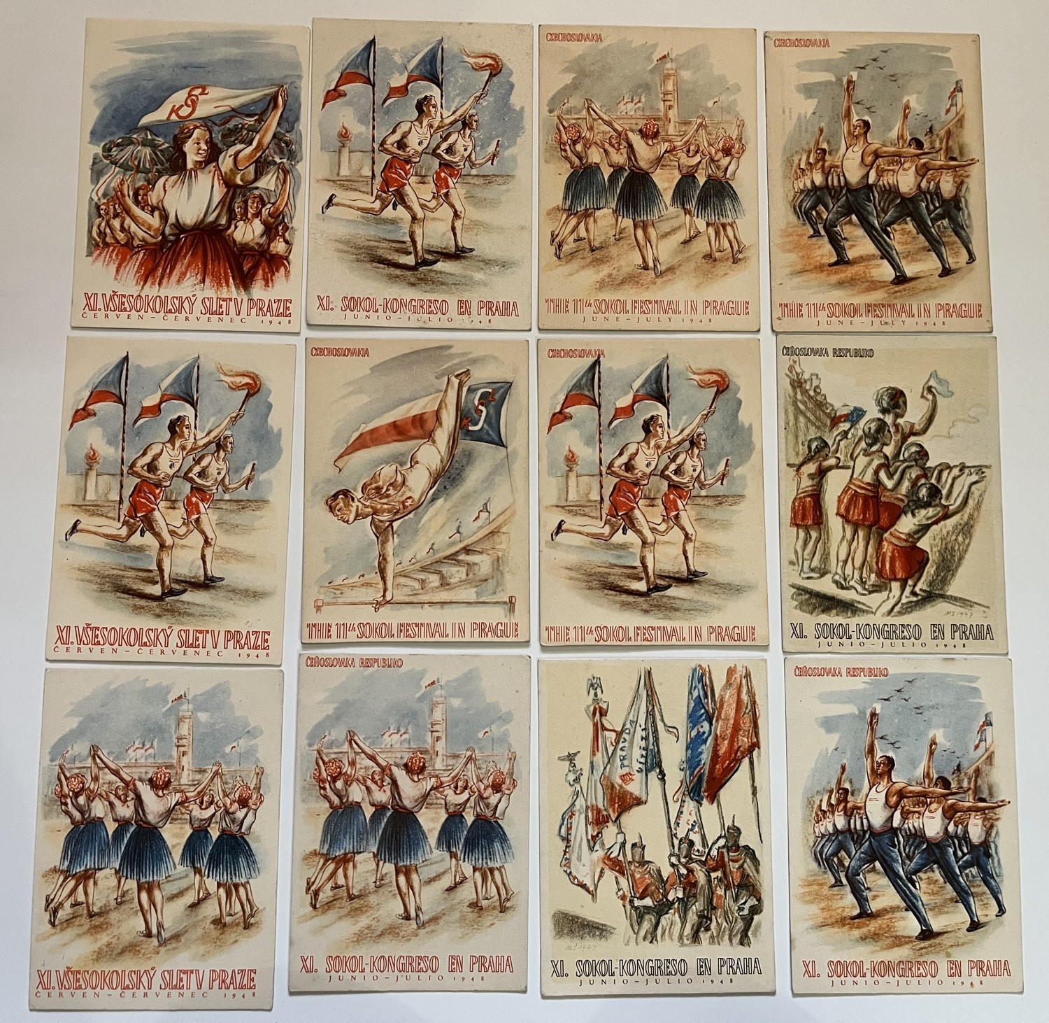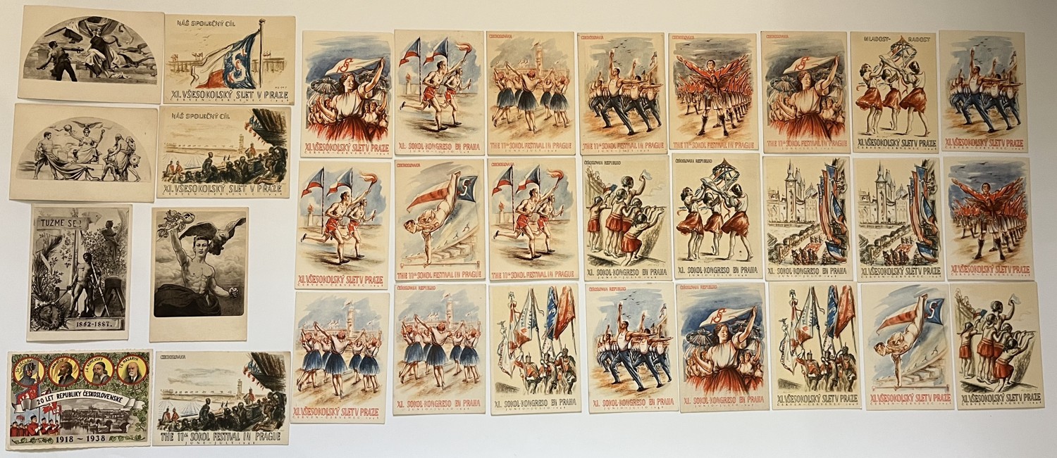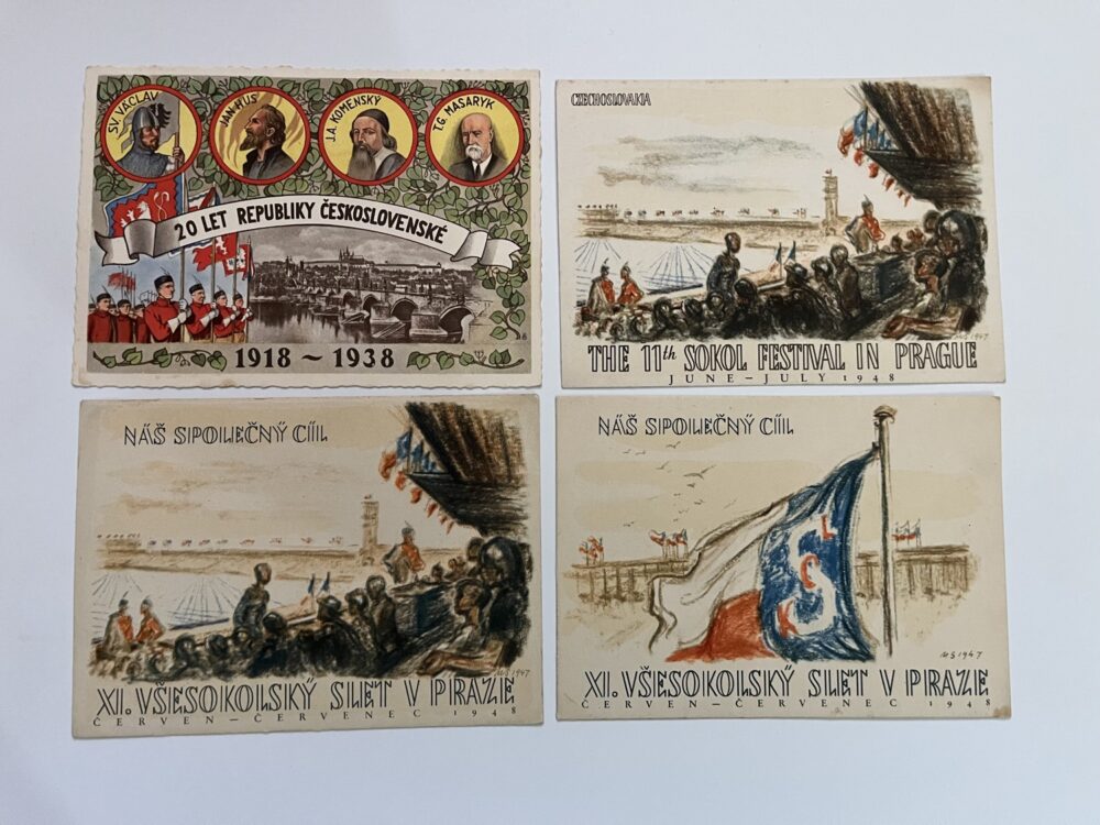 2 (hhf) VF 1 x pohlednice – 20 let Repubilky Československé 1918 – 1938, O. Ušák. Všesokolský slet 2 x ilustrátor F. Ženíšek, 1 x J. Preisler, 1 x B. Wachman. Pohlednice jsou čisté.