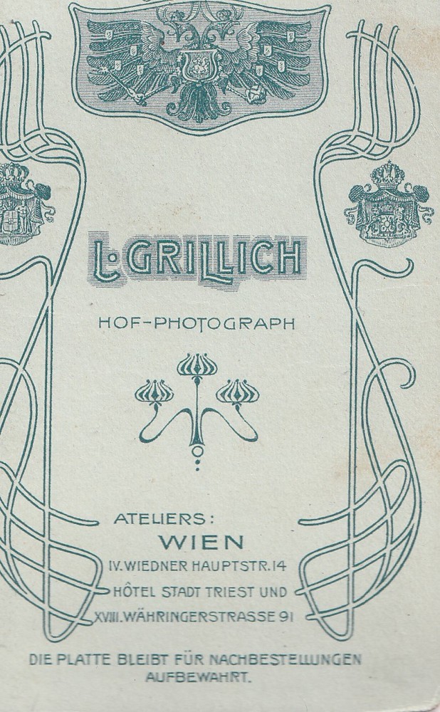 Vizitka Vojsko, portrét, L. Grillich, Vídeň Rakousko-Uhersko