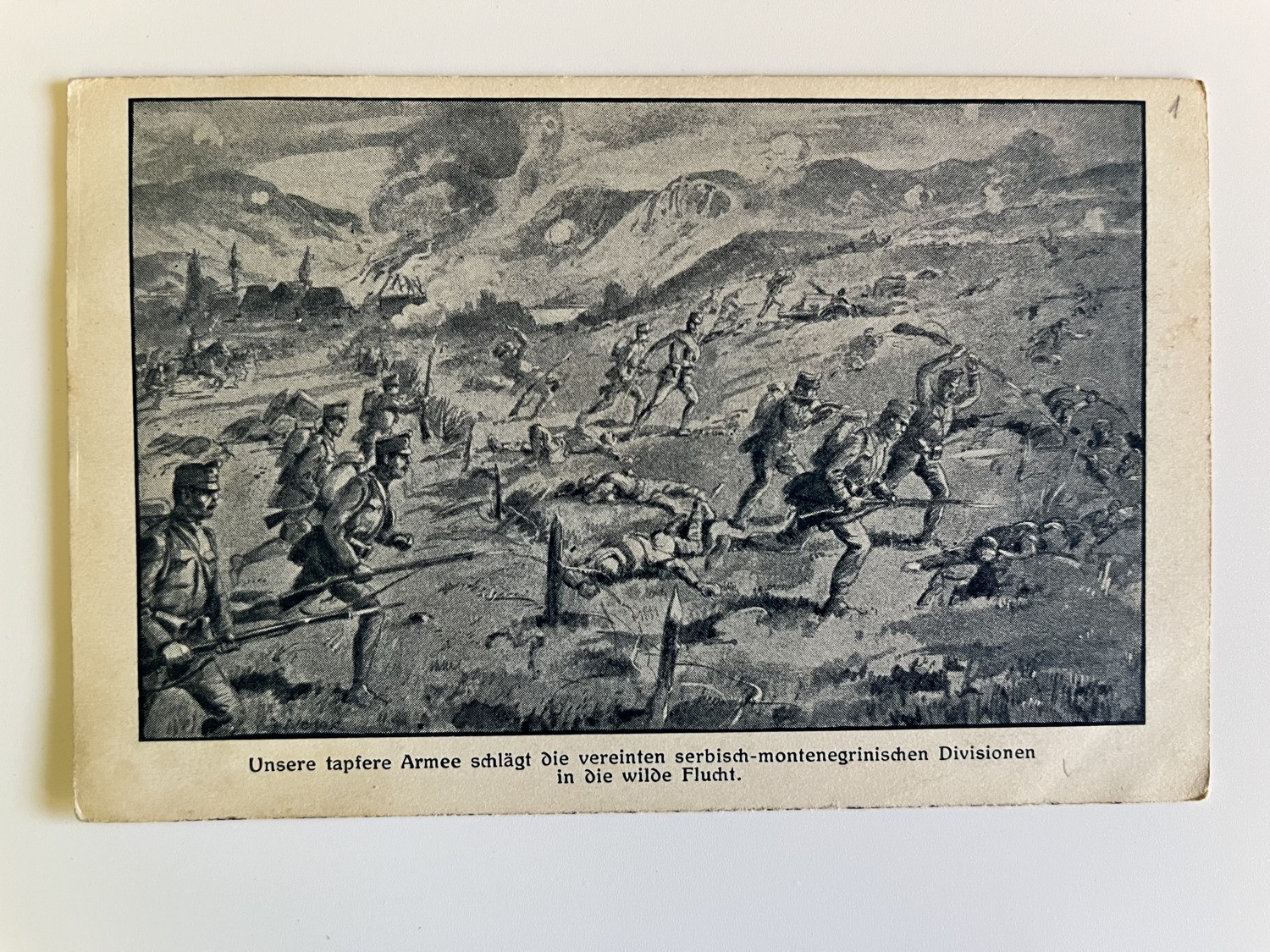 (hhl 86) MF pohlednice neprošlá. Naše statečná armáda porazila spojené srbsko-černohorské divize.