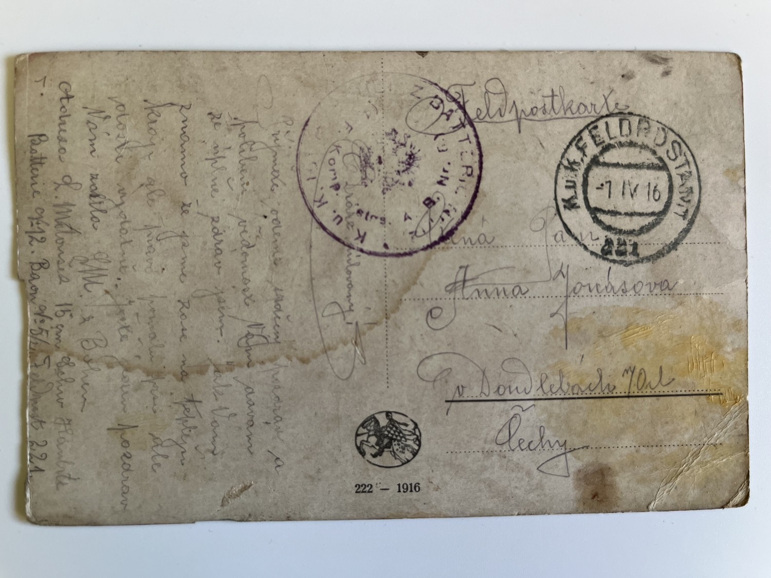 (hhl 28) MF pohlednice prošlá. Adresát Doudleby nad Orlicí (okres Rychnov nad Kněžnou), r.1916
