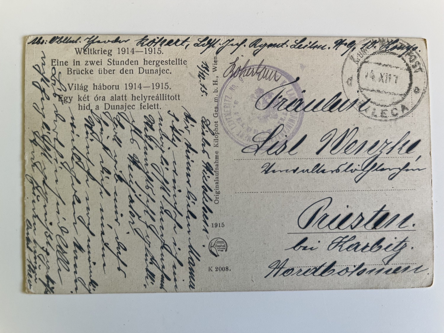 Vojenská pohlednice Most přes řeku Dunajec, vojáci 1915 - Obrázek 2